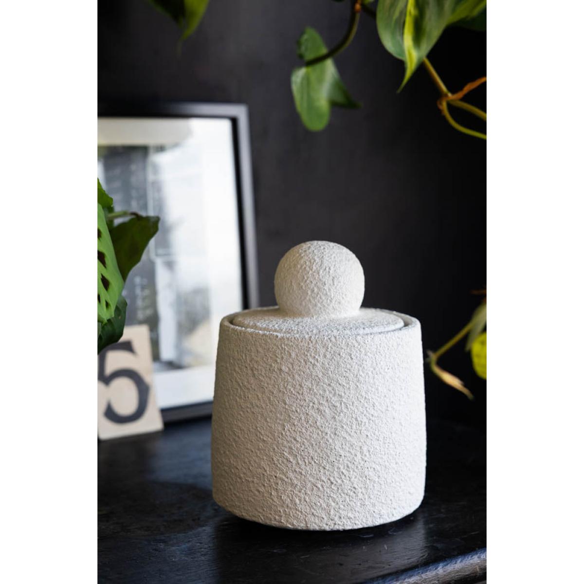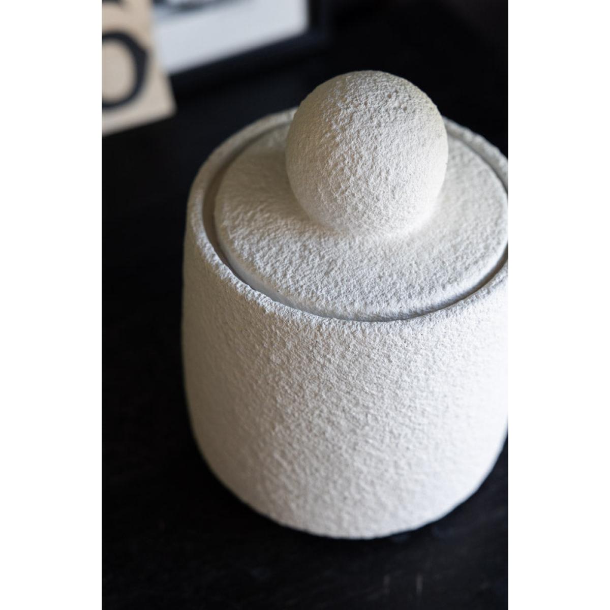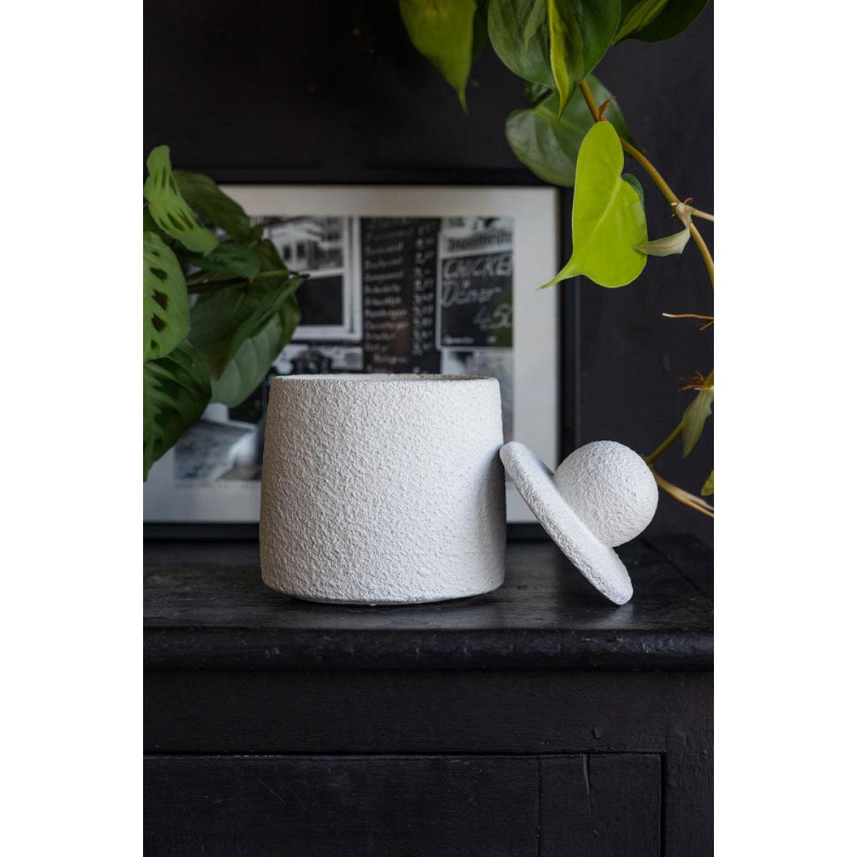 Introducing our Small Textured Jar, a charming piece crafted to bring a dash of rustic elegance to your home. This beautiful white jar features a subtly textured surface that gives it a handmade, artisanal quality, making it a versatile addition to your décor. A stunning way to store jewellery, dried flowers or even a decorative accent by itself, its timeless design complements a range of interior decor styles. It's a piece that adds warmth and character to your home wherever you choose to style it - embrace the beauty of handcrafted simplicity and enjoy. - Small Textured Jar - Measures: H20cm x D15cm - Material: Cement