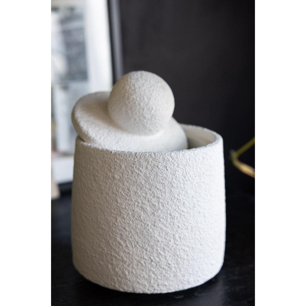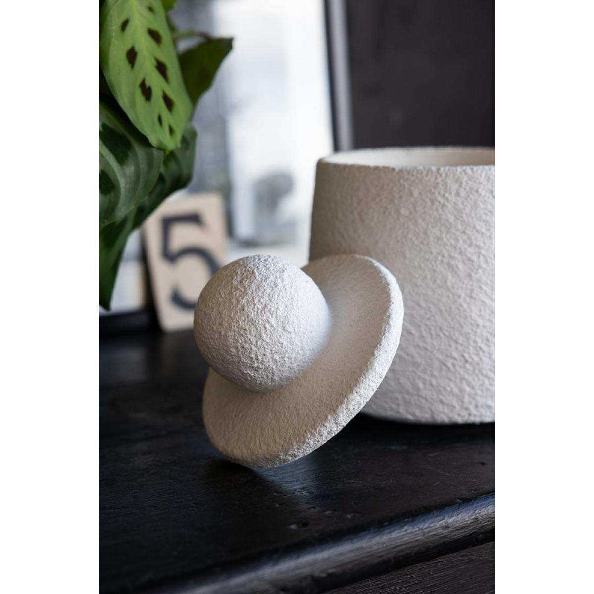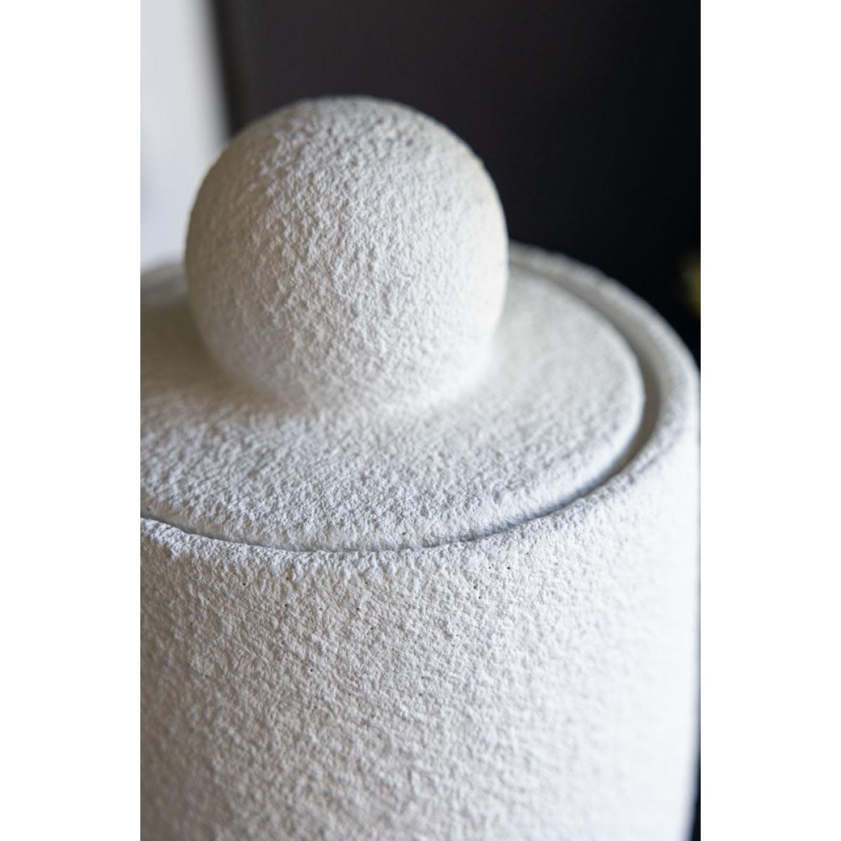 Introducing our Small Textured Jar, a charming piece crafted to bring a dash of rustic elegance to your home. This beautiful white jar features a subtly textured surface that gives it a handmade, artisanal quality, making it a versatile addition to your décor. A stunning way to store jewellery, dried flowers or even a decorative accent by itself, its timeless design complements a range of interior decor styles. It's a piece that adds warmth and character to your home wherever you choose to style it - embrace the beauty of handcrafted simplicity and enjoy. - Small Textured Jar - Measures: H20cm x D15cm - Material: Cement