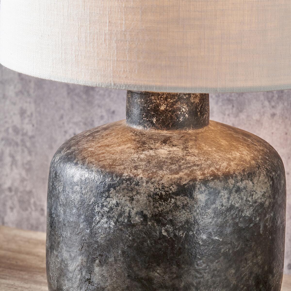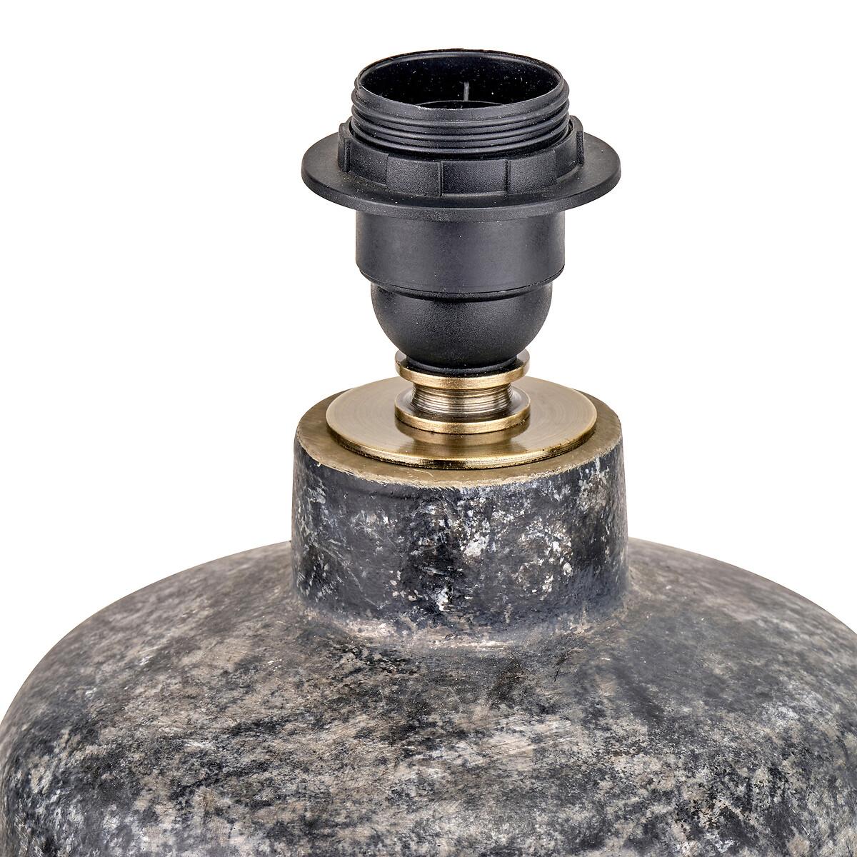 This perfectly proportioned table lamp base is sleek and sophisticated in a stone grey colour. This stoneware table lamp base, handmade in the Philippines, has a striking textured volcanic effect finish. Recommended lampshade size 25cms diameter.