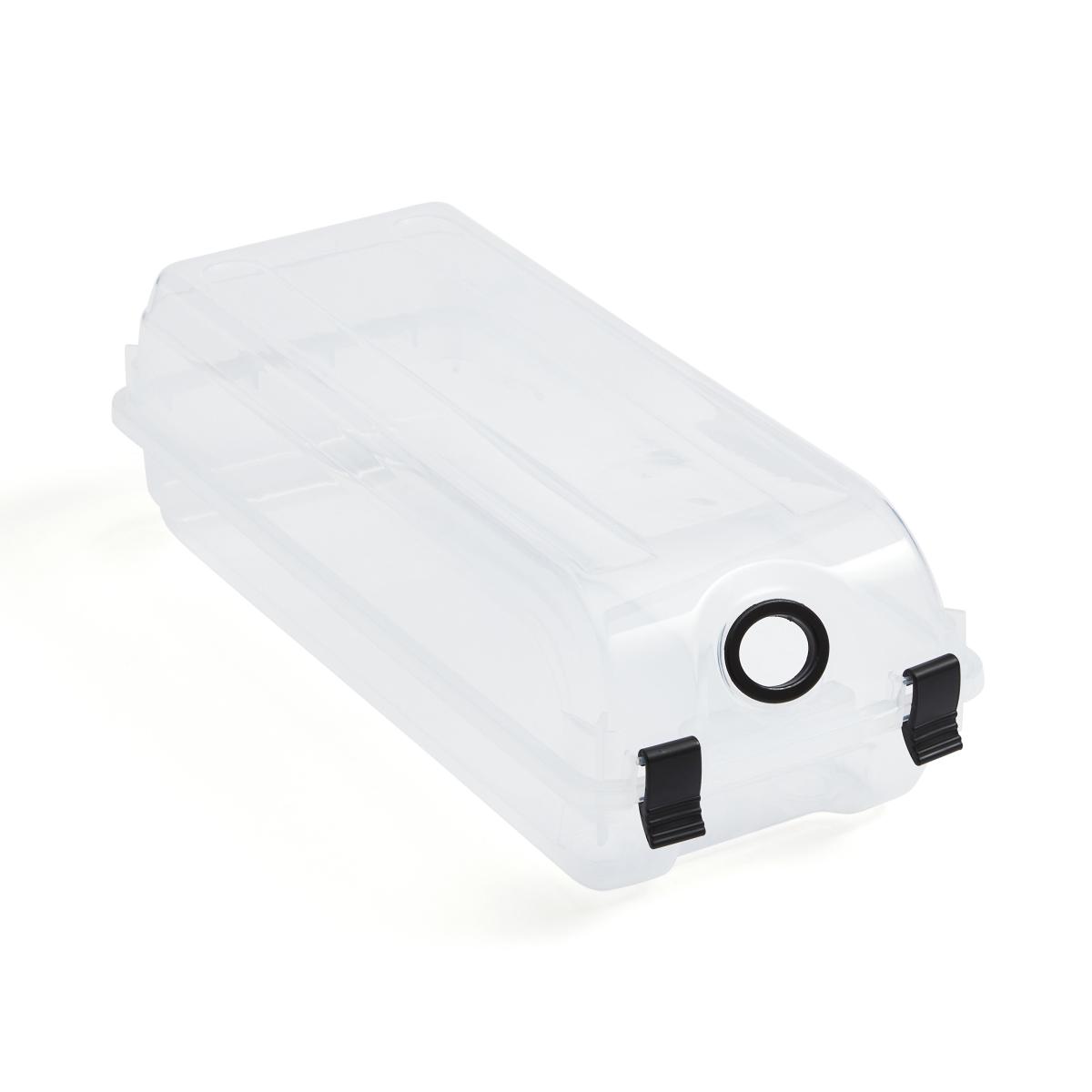 * Durable* Nestable and Stackable* Transparent look* Flat and elongated Keep your shoes organised and clean with our Small Shoe Box, crafted from polypropylene with a secure clip lock. It's designed with a breathable airway to let your shoes breathe and is nestable when not in use and stackable if you've got plenty of shoes to store! Available in a large and extra large size.