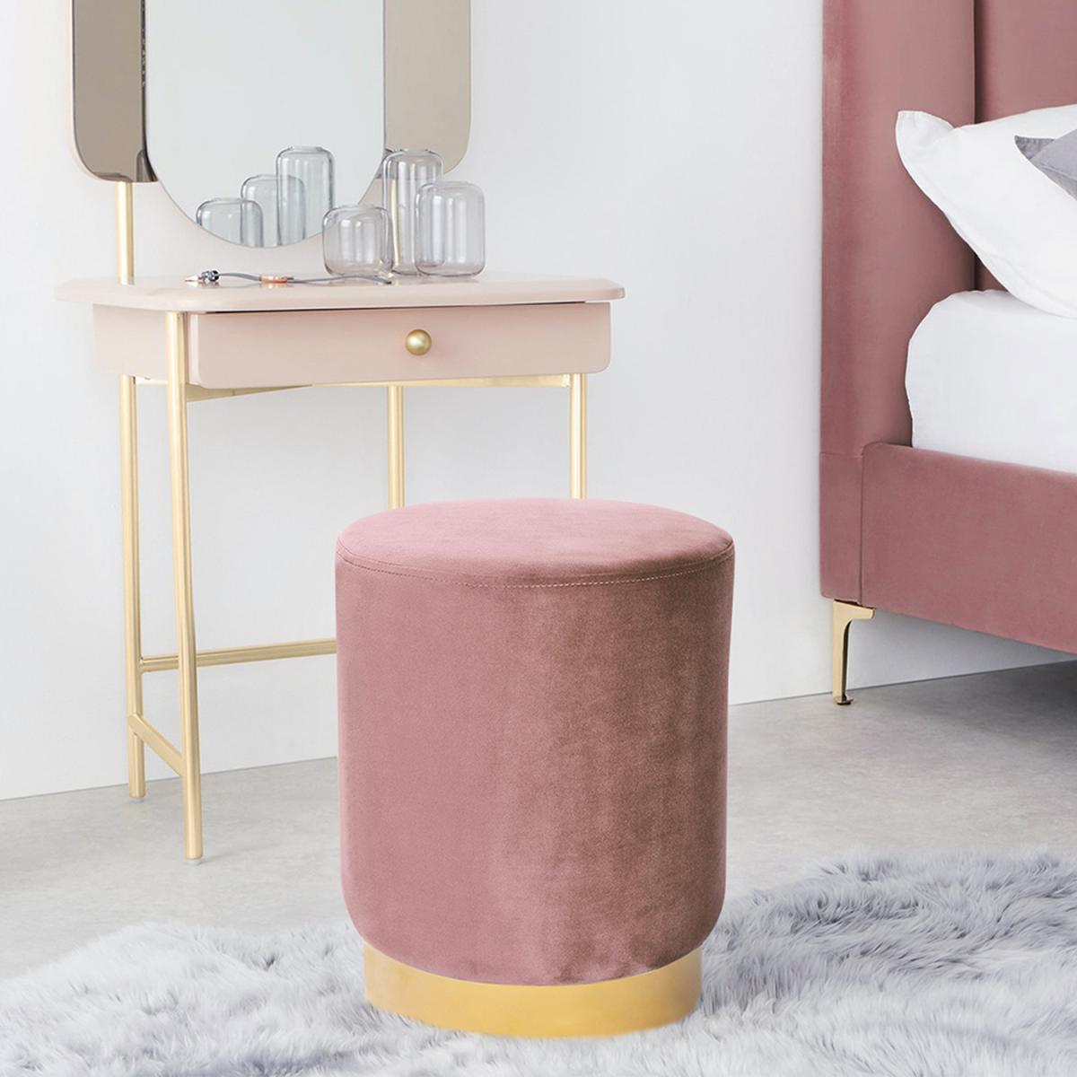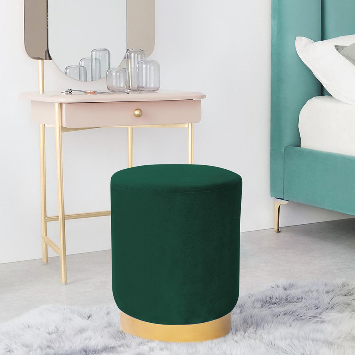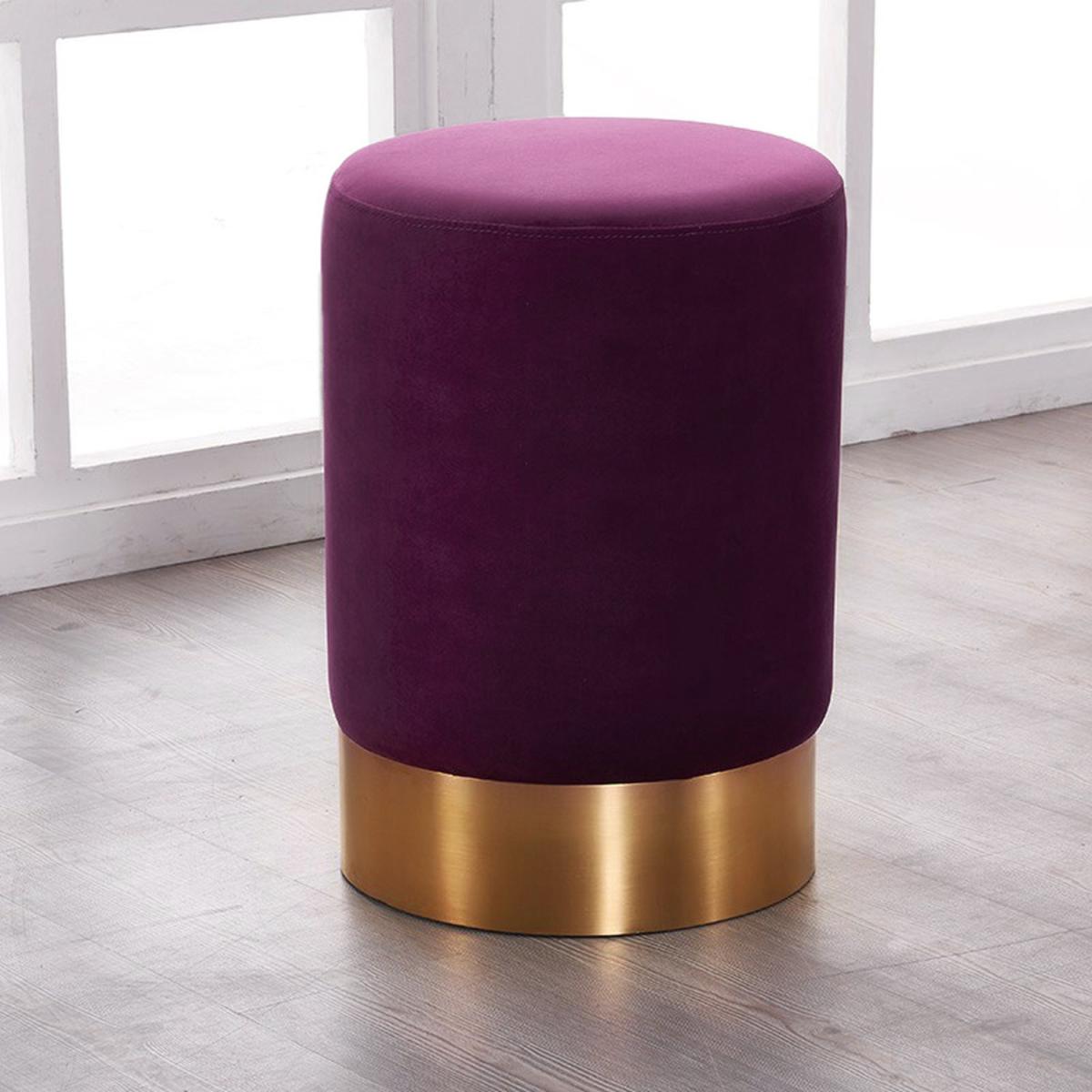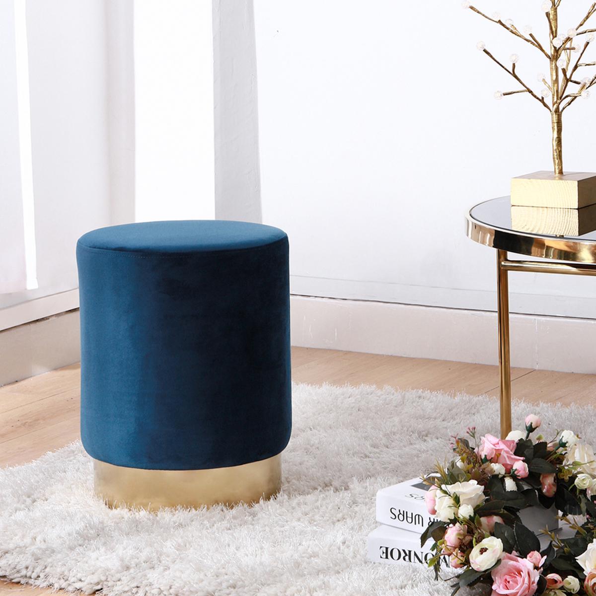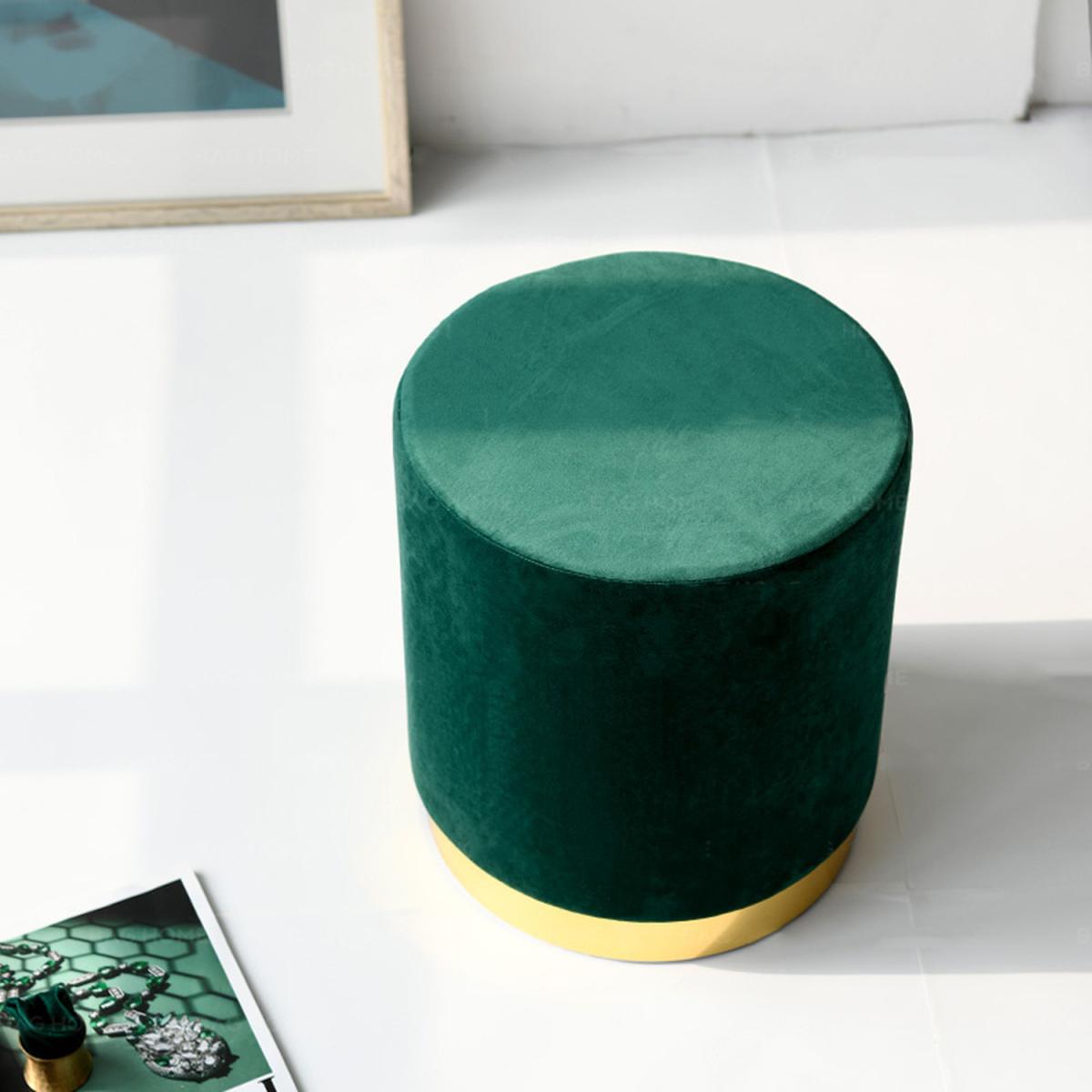 Covered in smooth velvet with a decorative gold trim and barrel stitching, this practical, round stool set has a padded seat. Use as a dressing table stool for storing makeup and lotions. Perfect as an extra living room seat or a footrest to rest your feet up. Both functional and decorative, this stool will be a gorgeous piece for your home. This footstool can be used as a small chair by the side of coffee tables, as well as footrests in front of the sofa at aside of aisle, and in-door shoe changing stool.