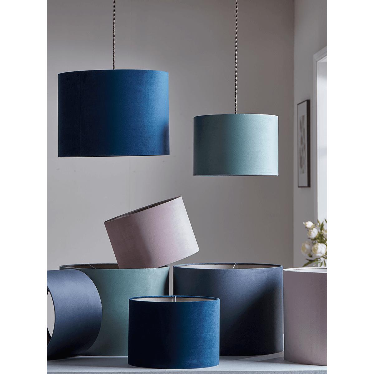 Bring a touch of elegance and sophistication to your home with our Small Velvet Shades. The shade is carefully crafted from luxurious velvet that shimmers gently when it catches the light and features a contrasting, yet complementary grey metallic inner. Our stylish and versatile lampshade will lend a tactile accent to your lamp bases or ceiling pendants. These shades are available in 4 colours, Pale Blush, Eau de Nil, Soft Grey, Deep Navy.