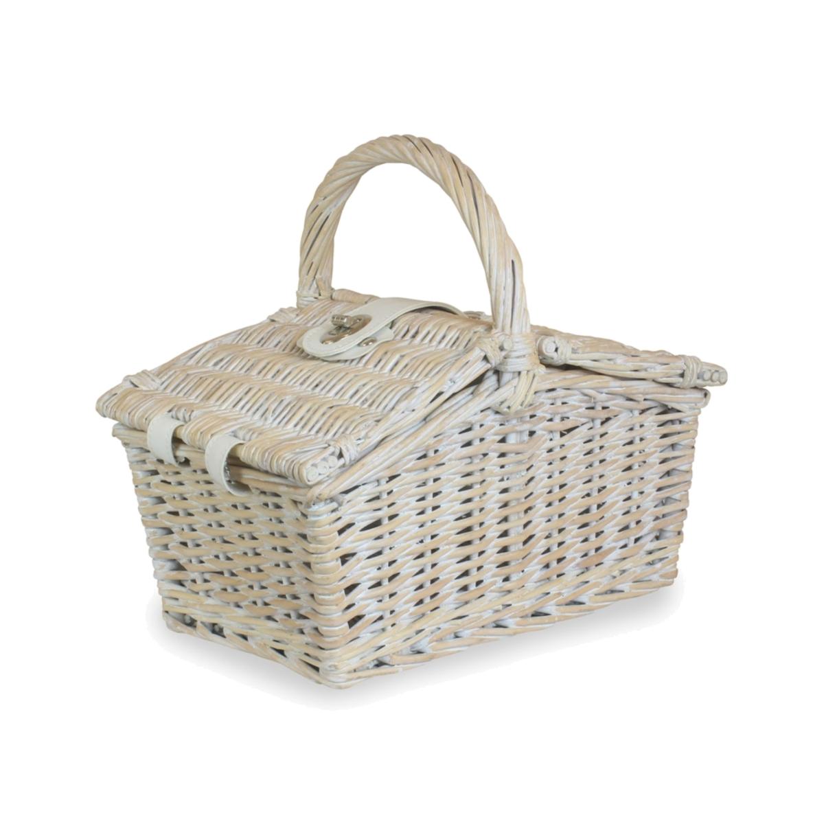 Finished in a full whitewash willow with white faux leather straps. Attractive looking. High Quality, Well Made Basketware. Natural product so dimensions can vary slightly. Manufactured from sustainable materials. Colours and finishes could vary.