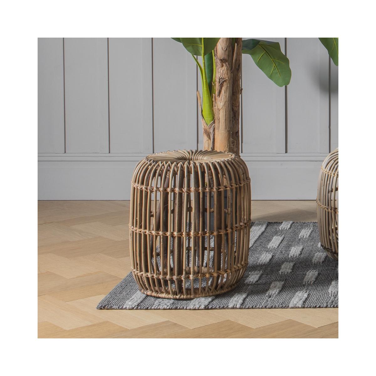 Small Wicker Side Table with Bent Wood Natural Finish - Caspian House