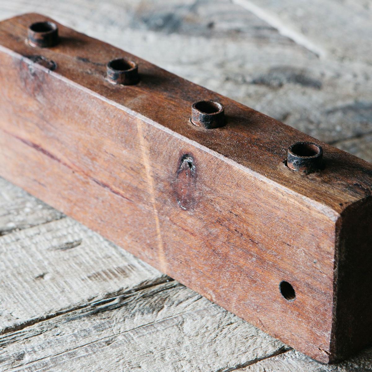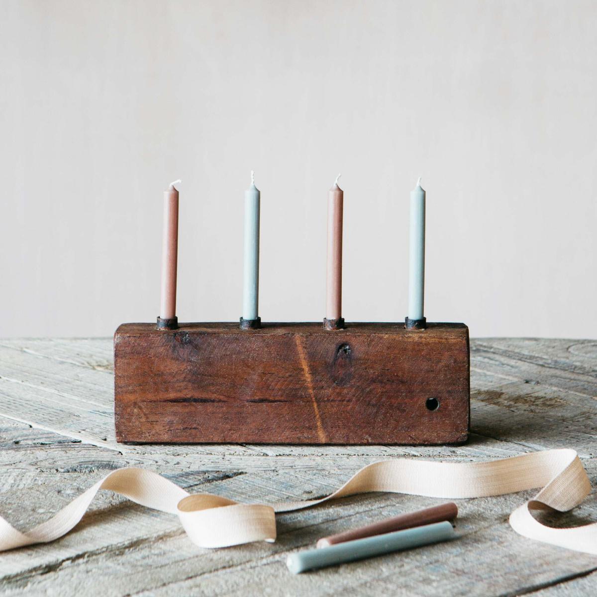 Made in India from recycled wood, this rustic candle holder can fit four tapered candles and will make a stunning centrepiece. Each piece of wood will vary with natural difference, adding to the holders character and charm.