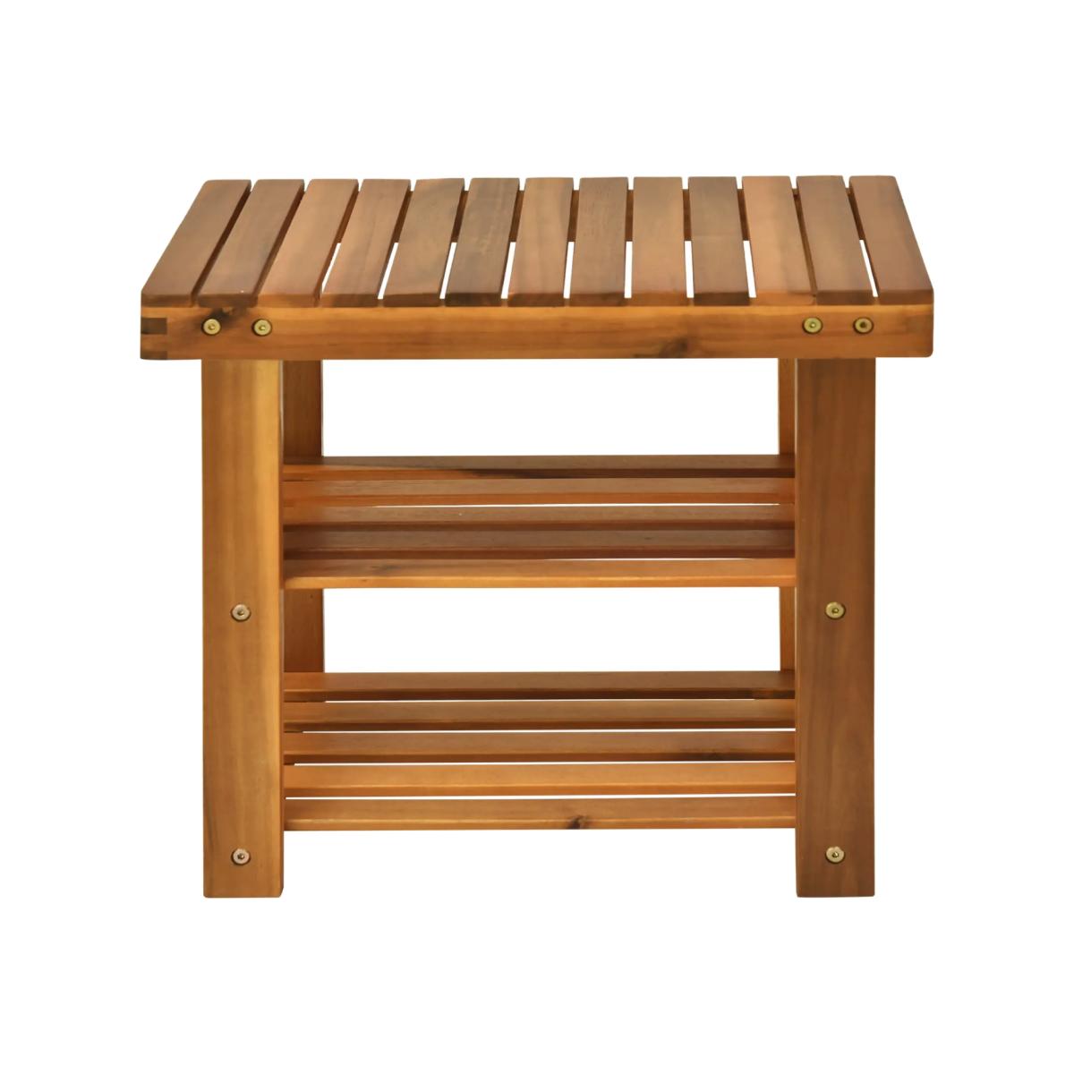 This rack offers generous space, accommodating shoes while providing a comfortable bench for changing footwear. Its strong and durable build is constructed from solid acacia wood; this bench ensures reliable daily use and supports up to 80 kg. With its classic, elegant design, this piece complements hallways, bedrooms, living rooms, and other areas throughout your home. The smooth varnished surface makes cleaning quick and easyjust wipe it down with a damp cloth.