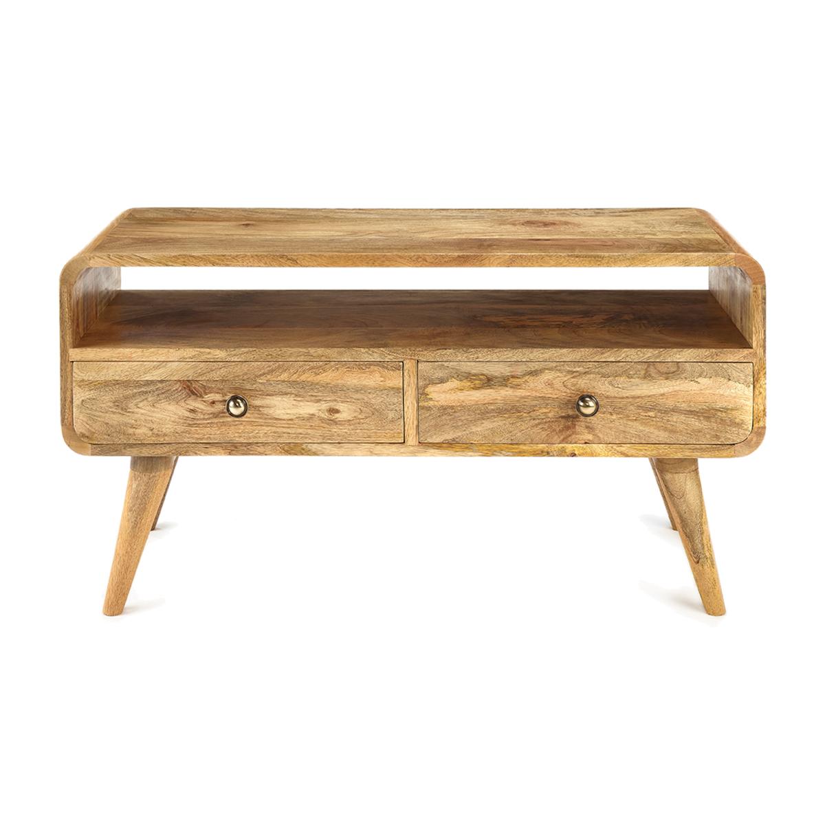 This solid mango wood TV unit with 2 drawers is a stylish and practical addition to your living space. Crafted from premium, sustainable mango wood, the unit features a light oak finish that beautifully showcases the woods natural grain, adding a touch of warmth and elegance to your room. Designed with both form and function in mind, it offers two spacious drawers for discreet storage of remotes, cables, and other media essentials, while the open shelf provides the perfect spot for media players or gaming consoles.