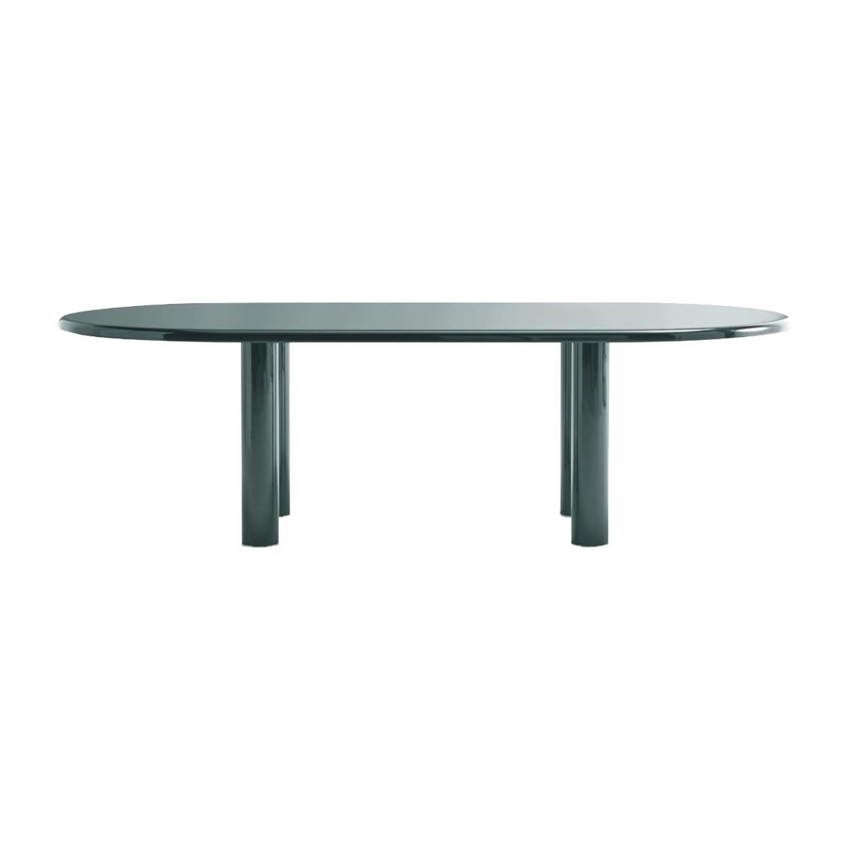 Designed by Edward Barber and Jay Osgerby for Knoll, the pristine Smalto Oval Dining Table in grey and green is a contemporary reinterpretation of the great design classics. Crafted from enamelled steel, it features a reinforced honeycomb core for increased stability and noise minimisation. Its sculptural composition features a thick table top on sturdy tubular legs. It is a considered example of balance and simplicity, which allow it to complement both contemporary and classic interiors. A duo celebrated for their epic contribution to contemporary design, Edward Barber and Jay Osgerby founded their award-winning studio Barber & Osgerby in 1996. Designing buildings, furniture and even the 2012 Olympic torch from their base in London, the pair have been awarded OBEs for their services to the design industry.