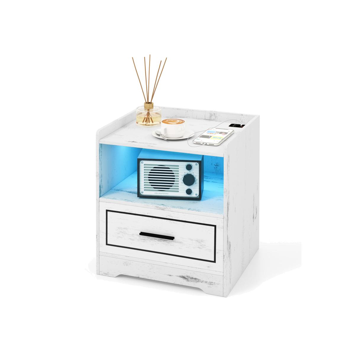 This upgraded LED nightstand features 3 light colours with adjustable brightness, which create a fantastic ambience in your bedroom in the darkness. When the people approach within 1 m, the light will auto-turn on. When the people leave after 30 s, the light will auto-turn off. There is a USB port and type-C socket to provide fast charging options for electronics. In addition to the drawer, this sofa side table also offers a tabletop and open shelf, where you can store and display decorative items and bedtime essentials.