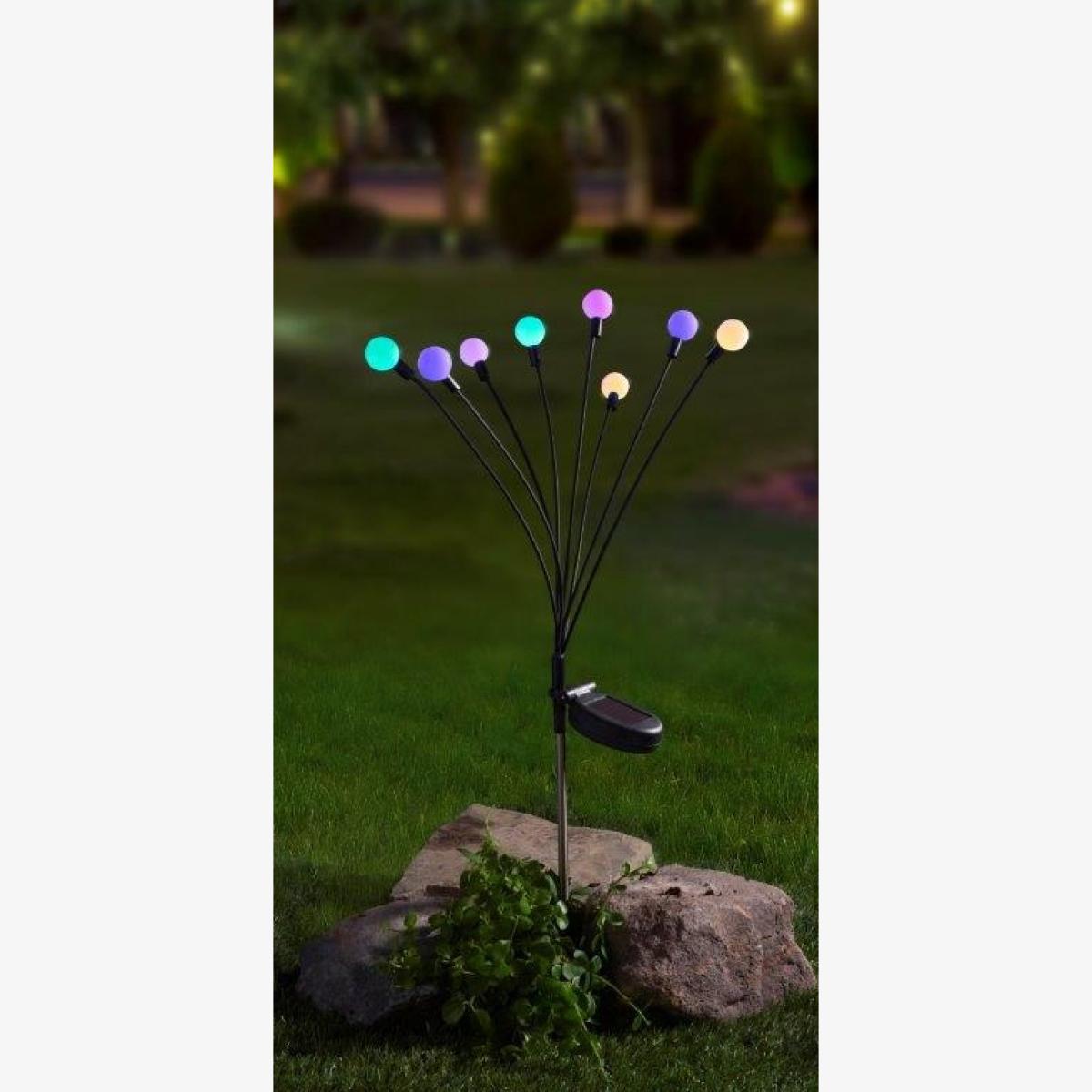 These attractive Smart Garden 8-Stem Gloglobes Stake Light - Multi Coloured feature 8 soft and flexible stems, each topped with a 2.5cm diameter ball, that dance and sway in even the tiniest breeze. The 70cm stake has an in-built solar panel that receives charge from the sun by day, and then automatically switches on at night, creating an effect similar to fireflies and glow worms for a stunning eye-catching effect. The stakes are attractive as they are, but when displayed together in a large bunch, or lining a path, they look incredible. Features: Globe stems sway gently by day and glow by night Soft and flexible branches sway and dance in the slightest of breeze harges in direct sunlight Automatically illuminates at night Multi Coloured LEDs Height: 70 cm
