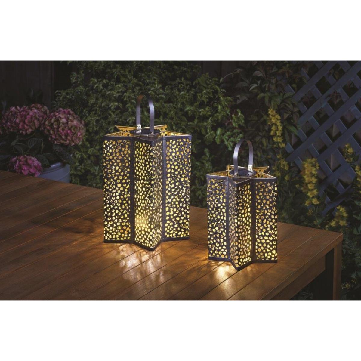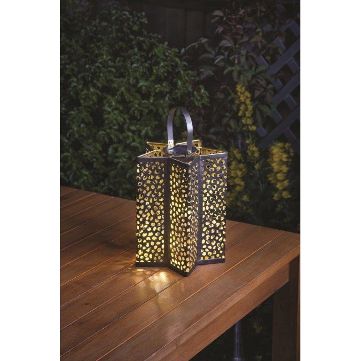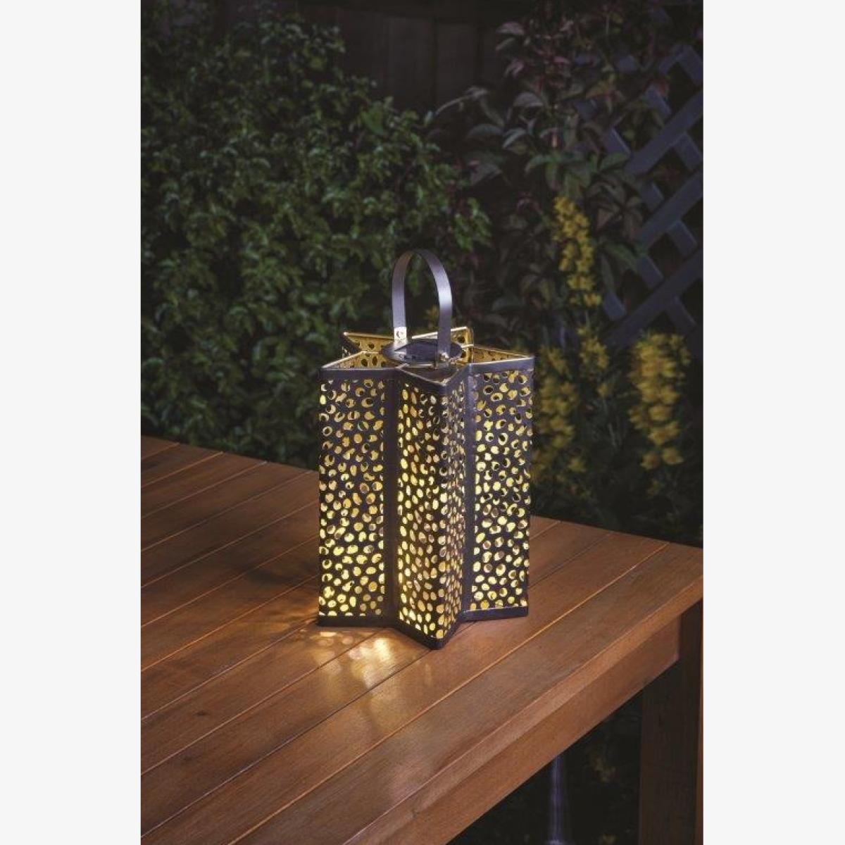 Experience stunning decorative lighting with the Smart Garden Celeste Lantern! Its super bright light creates a beautiful silhouette effect that automatically illuminates at dusk. Versatile, it can be used as a tabletop or hanging lantern with no mains wiring needed. Enjoy 6+ hours of operation when fully charged. Features: Super bright light creates a stunning decorative silhouette effect Automatically illuminates at dusk Can be used as a tabletop or hanging lantern Easy to use - no mains wiring Minimum operating time of 6+ hours when fully charged. 24 x 19 cm Dia.