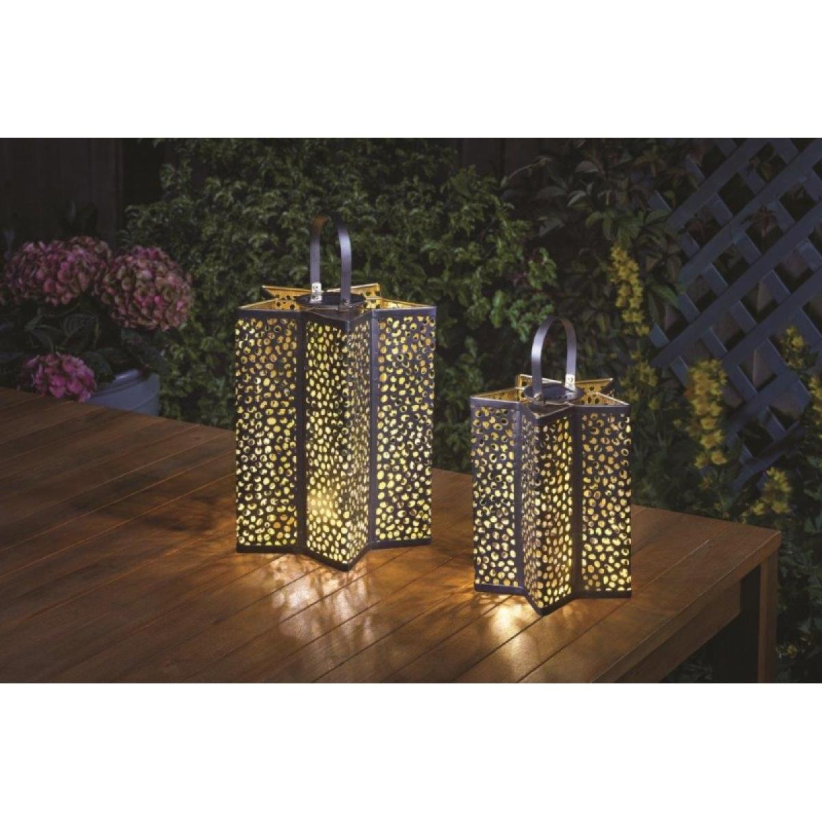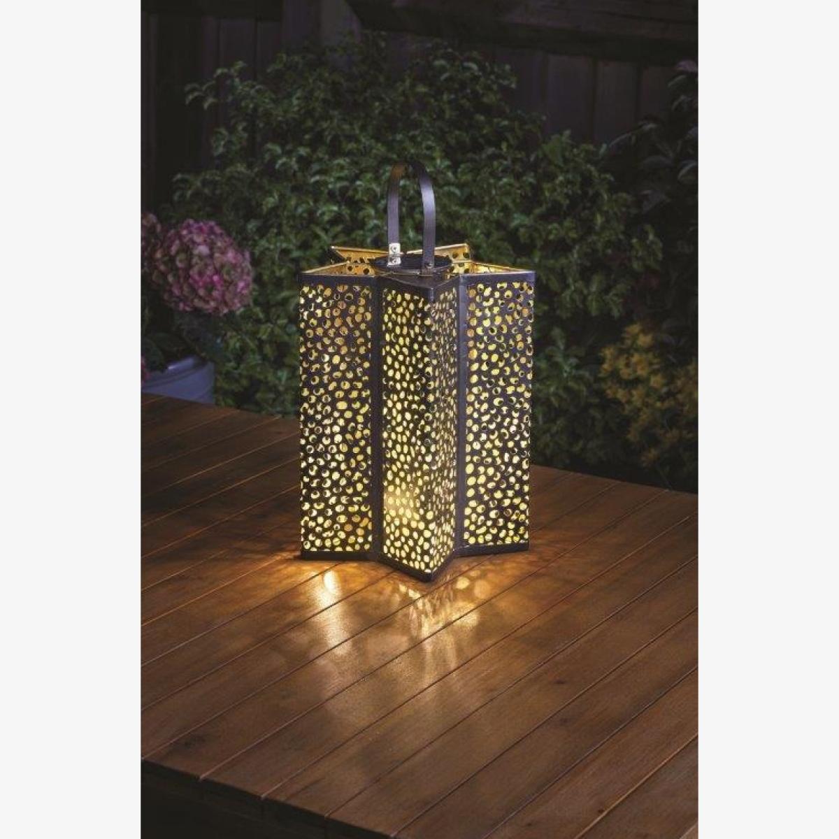 The Smart Garden Celeste Lantern - XL perfect for hanging around the garden or using as a tabletop decoration. Unique and vibrant garden decoration that looks great by day and illuminates at night. Décor by day, light by night perfect for adding a little fun to your outside space. Super bright light creates a stunning decorative silhouette effect Features: Super bright light creates a stunning decorative silhouette effect Automatically illuminates at dusk Can be used as a tabletop or hanging lantern Easy to use - no mains wiring Minimum operating time of 6+ hours when fully charged. 30 x 24 cm