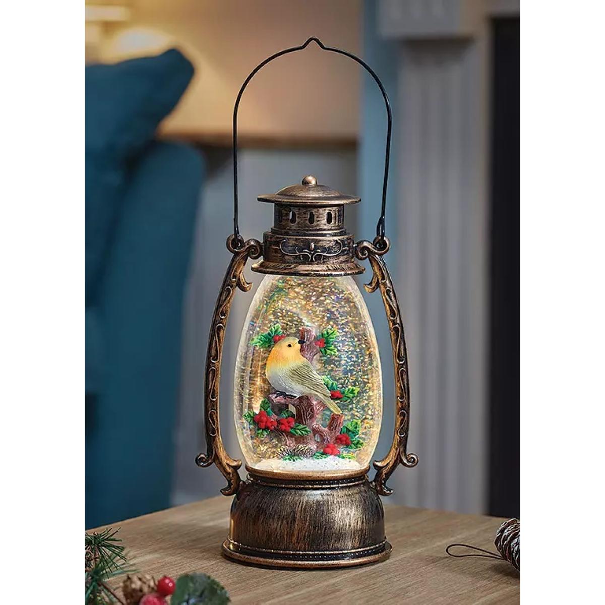 The Smart Garden Festive Robin Lantern is a charming way to light up your seasonal décor. Inside its classic lantern frame sits a delightful robin scene, softly illuminated by warm LED lighting for a cosy Christmas glow. Battery-powered for easy placement, it works beautifully on windowsills, tables, or as part of a festive display. A simple yet heartwarming decoration that brings a touch of winter cheer indoors. Features: Snow swirling lantern with warm white light Black and copper brush effect finish 3 x AA batteries (not included) Auto Timer Function 6hrs on/18hrs off Indoor use only Height: 24cm