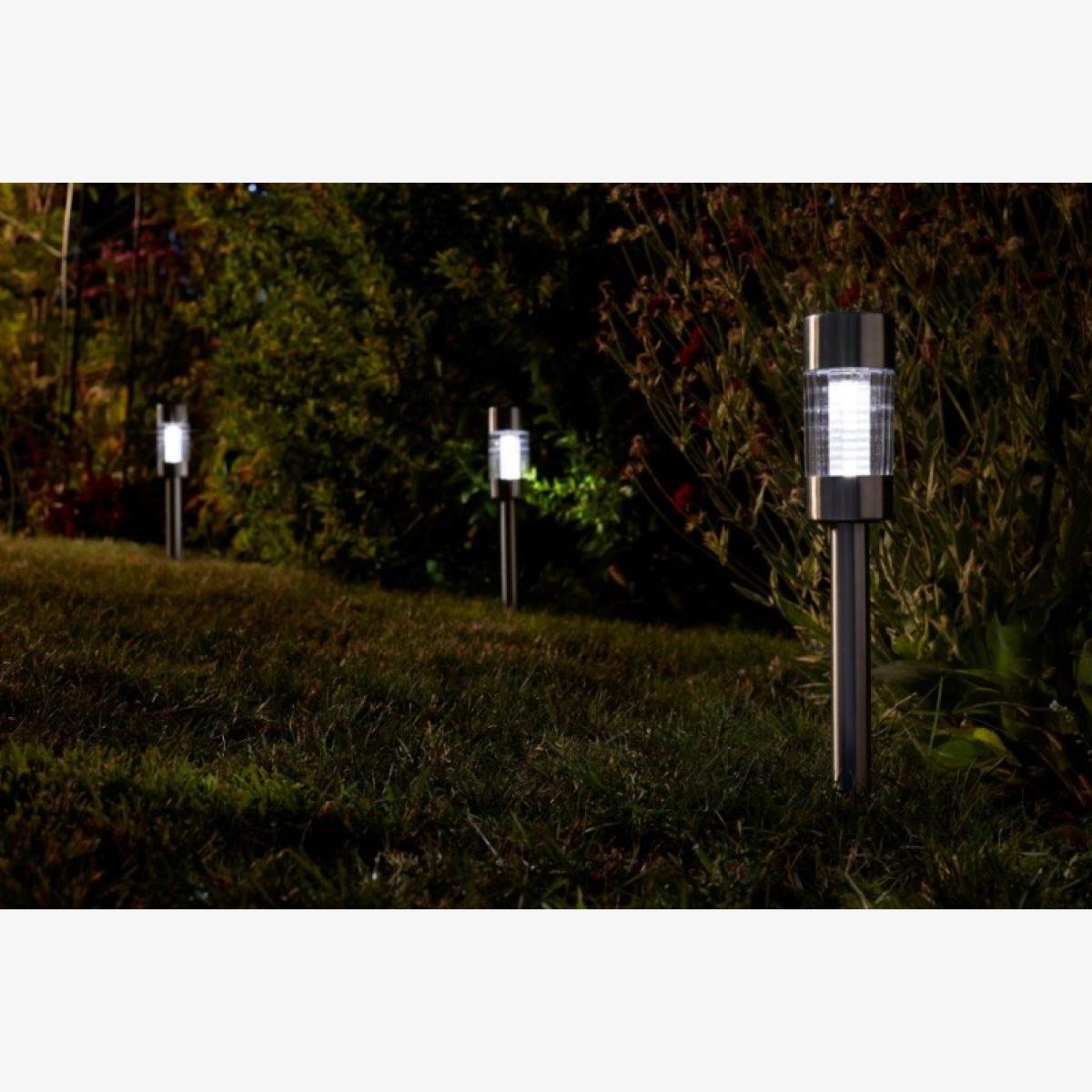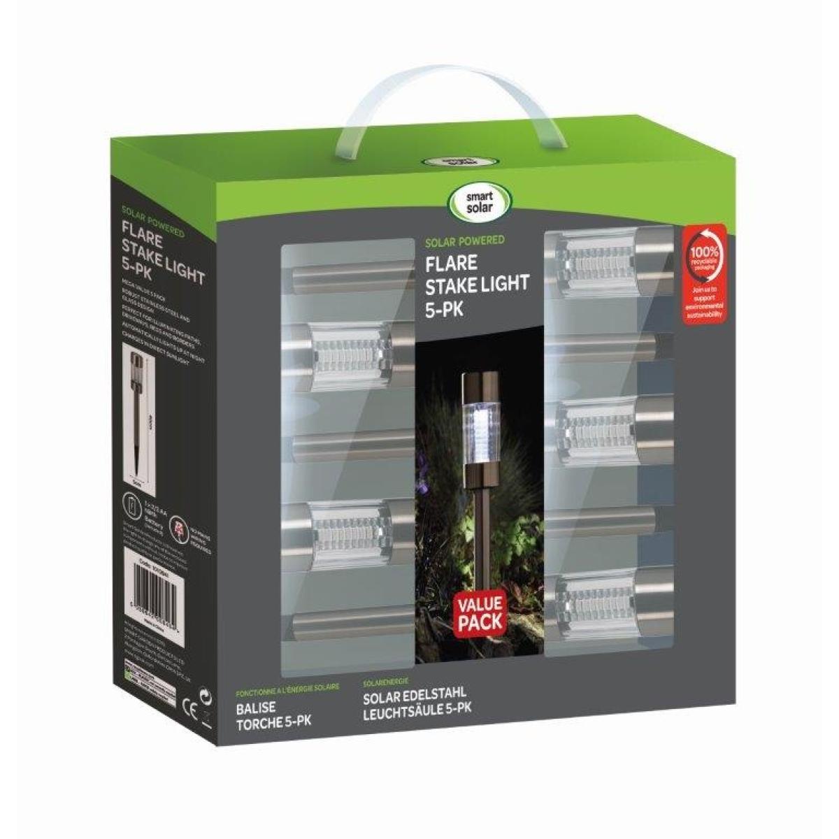 Bold Lighting. Effortless Style. All from the Sun. Add striking flair to your garden path, flower bed, or driveway with the Smart Garden Flare Stake Light – 5 Pack. Designed to blend sleek modern design with practical function, these solar-powered stake lights offer a bold yet elegant glow that elevates your outdoor space—no cables, no hassle, no extra energy bills. Each light features a dramatic flared top that casts a warm, ambient shine—perfect for highlighting your landscaping or creating a welcoming walkway after sunset. Powered by intelligent solar technology, they charge through the day and switch on automatically at dusk, delivering effortless lighting that’s kind to the planet. Weatherproof and easy to install, this pack of five is the perfect solution for low-maintenance, high-impact outdoor illumination. Features: Solar powered stainless steel bollard design stake light Ideal for marking paths and driveways Charges in direct sunlight Automatically illuminates at night Height: 40 cm