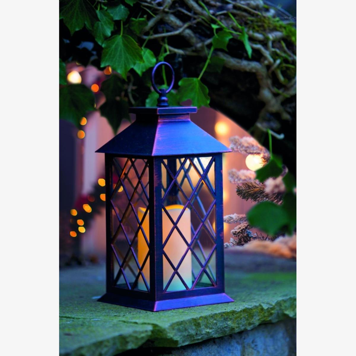 Add a warm, festive glow to your home or garden with this charming Lattice Lantern. Perfect for creating a cozy ambiance both indoors and outdoors. Product Features: Realistic Flickering Candle Effect – mimics the glow of a real candle Auto Timer Function – 4 hours on / 20 hours off for effortless use Battery Operated – requires 2 x AA (not included) Indoor & Outdoor Use – versatile for any setting Dimensions: 30 x 14cm – compact and stylish All screens vary in colour reproduction and whilst every effort has been made to display the colour as accurately as possible it is for guidance only.