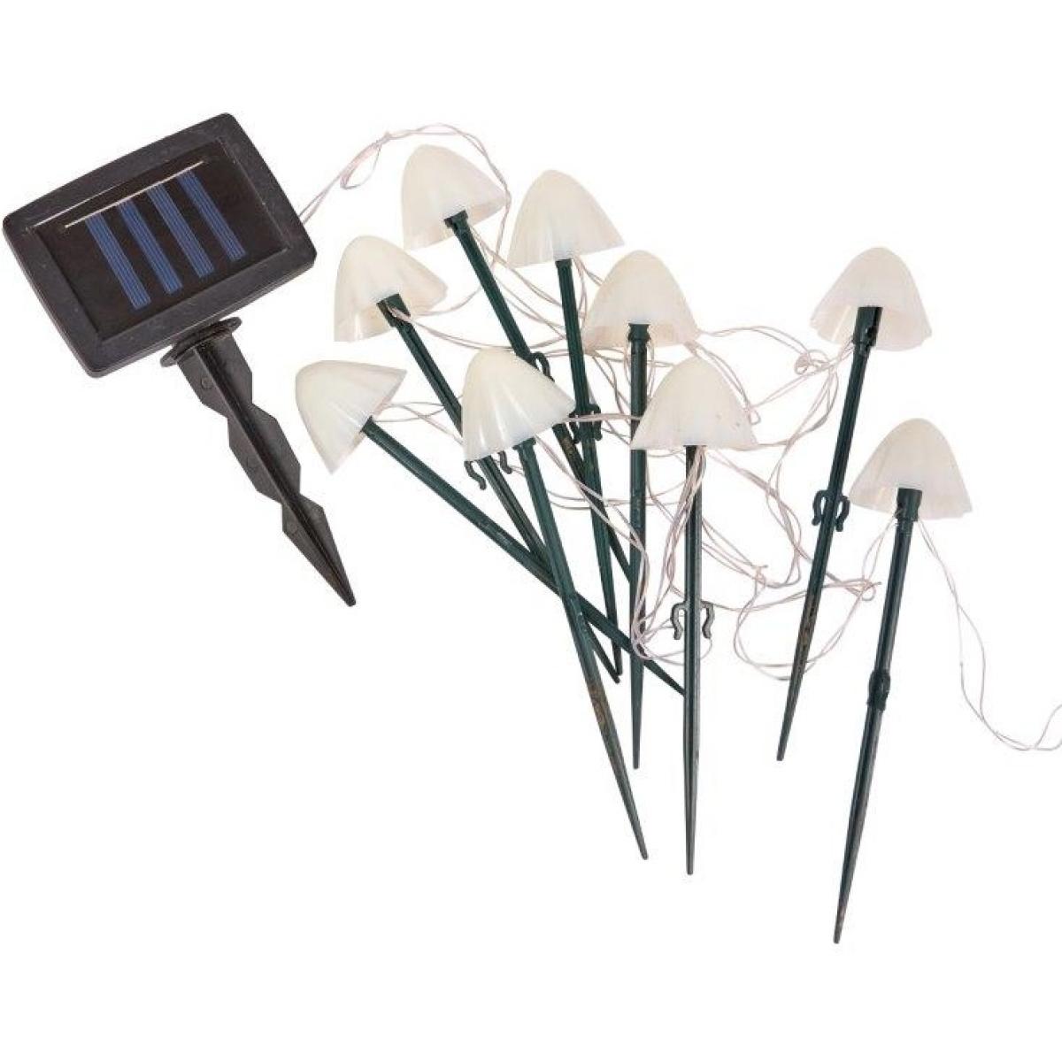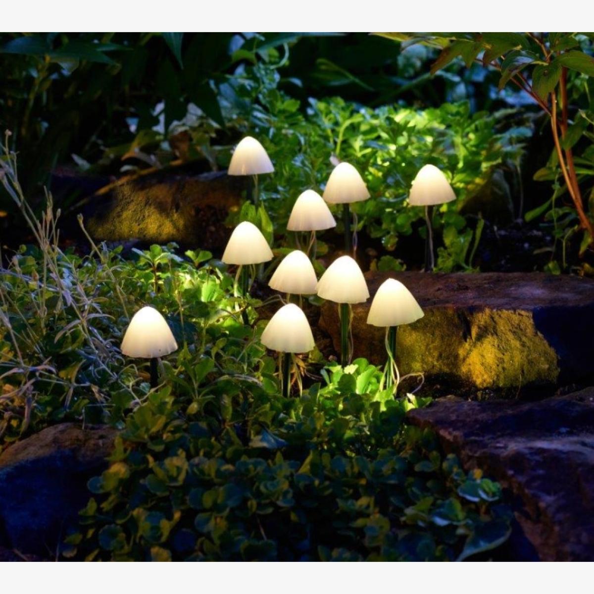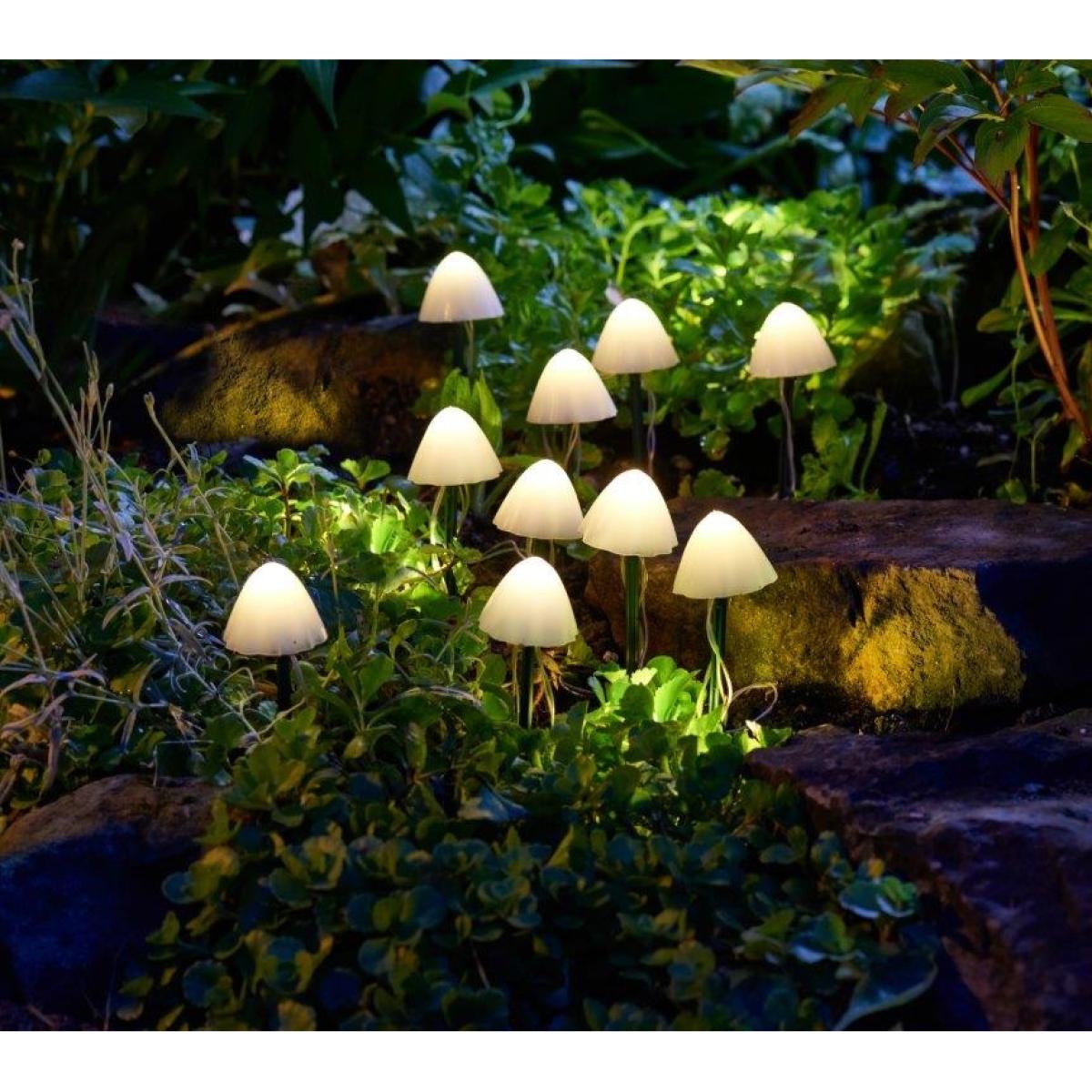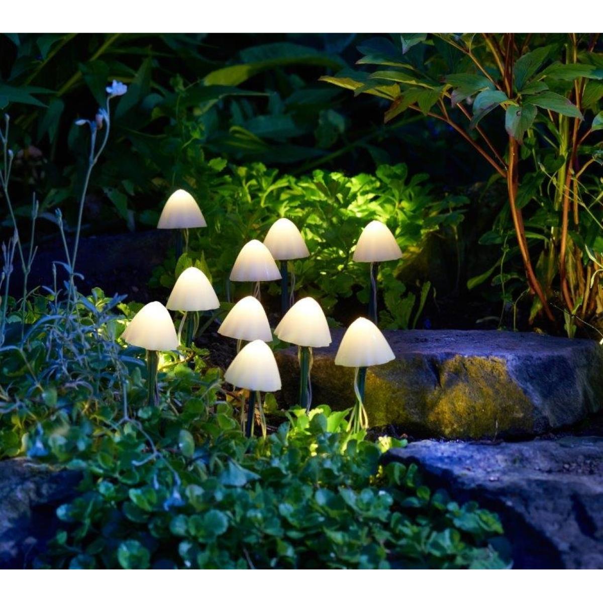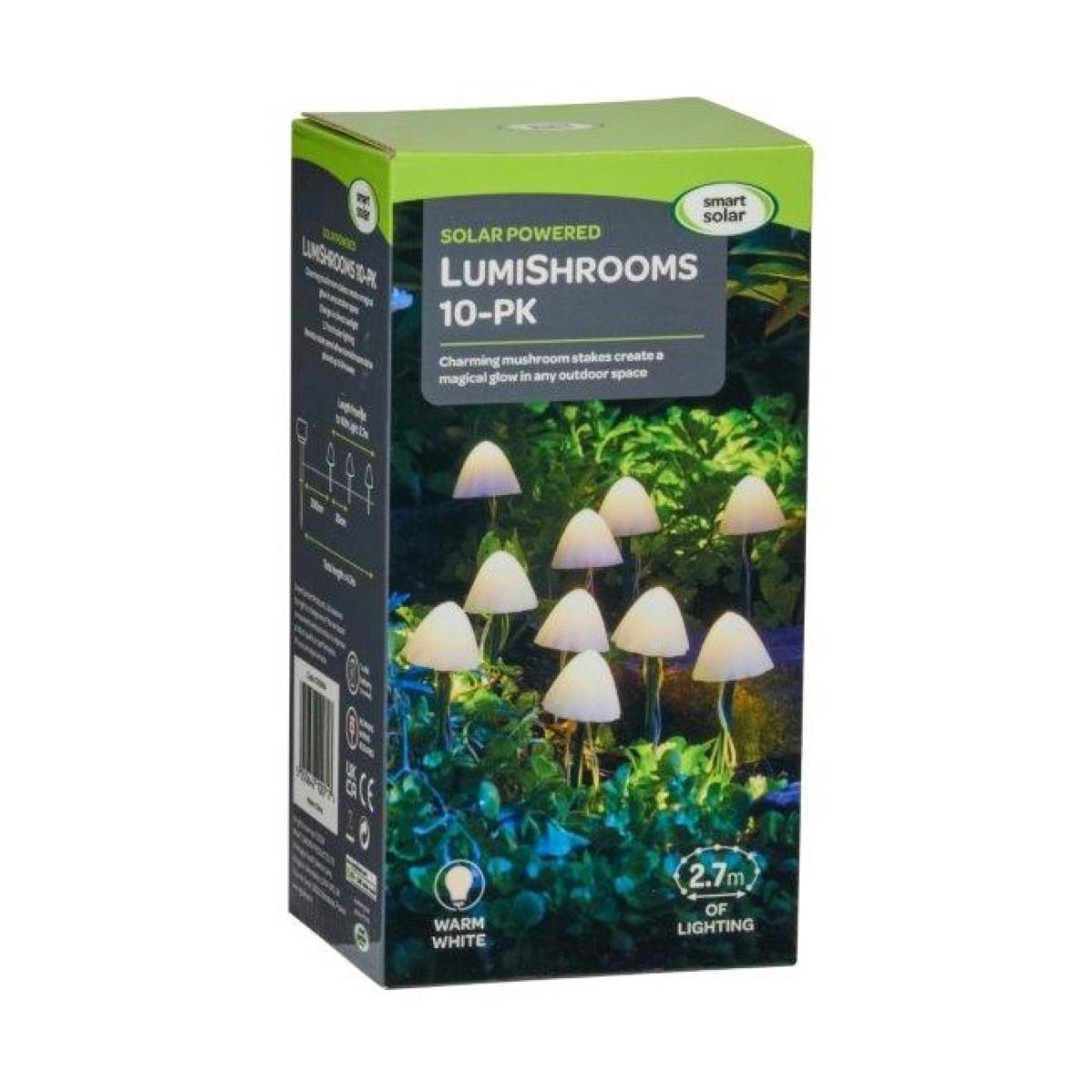 This charming set of 10, Lumi Shroom Solar Powered Stake Lights are designed to add character and fun to your garden, whilst casting a gentle glow that transforms your garden or pathway into a blissful setting. Powered by solar energy, these stake lights charge during the day when exposed to direct sunlight, ensuring a cost-effective and hassle-free operation. As night falls, the lights have been designed to automatically turn up, illuminating your outdoor space with warm white LEDs. Each stake light features a mushroom design, adding an enchanting touch to your garden or pathway, and with a 30cm cable between each mushroom, you can customize the arrangement to suit your landscape perfectly. Features: Charming mushroom stakes create a magical glow in any outdoor space Set of 10 fun and funky Funghi! Unique and vibrant garden decoration that looks great by day and illuminates at night Durable plastic construction 30 cm cable between each mushroom 10 Warm White LEDs Charges in direct sunlight Automatically illuminates at night Height: 20 cm (each mushroom) Lit Length: 2.7m