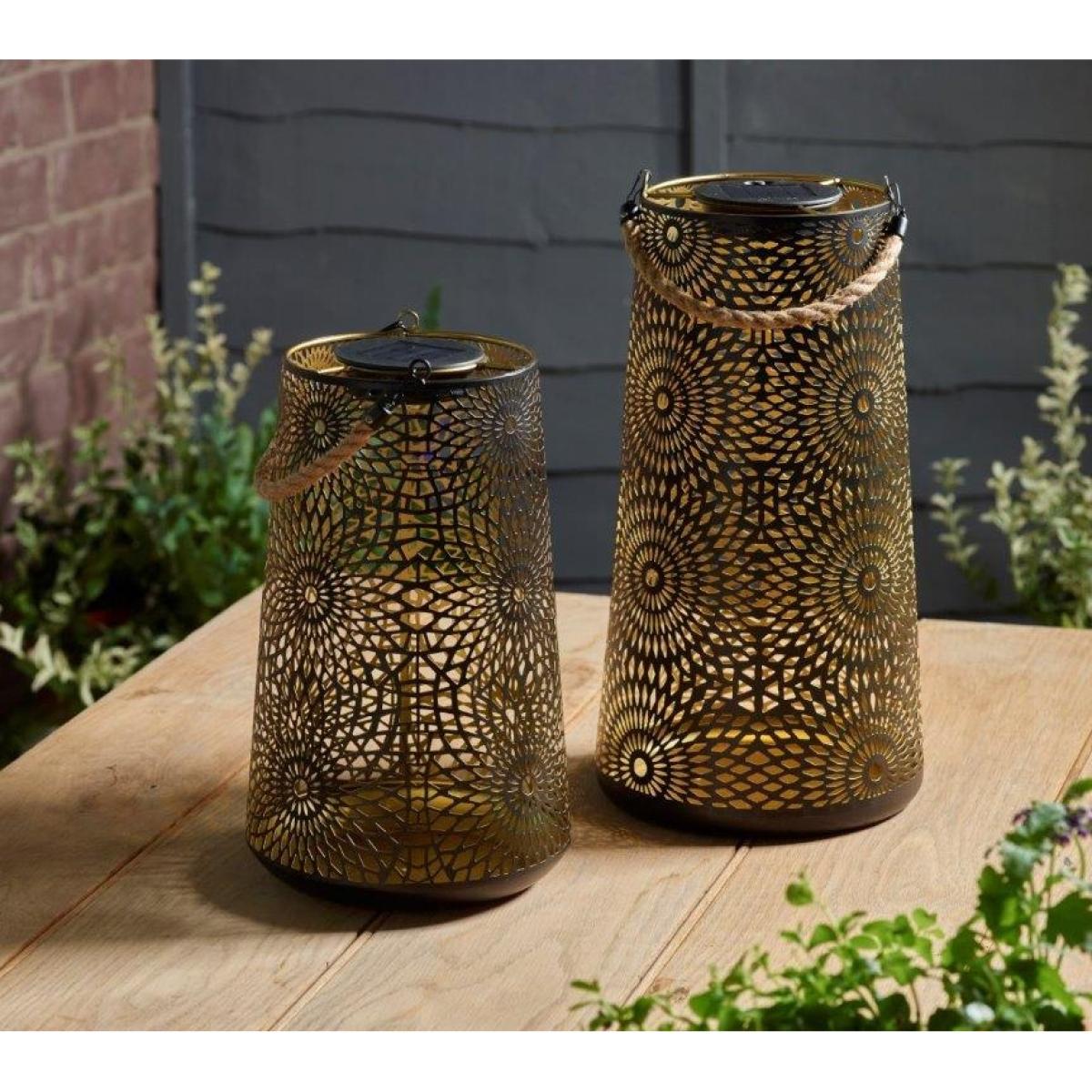 Illuminate your garden with the stunning Smart Garden Muscat Lantern - XL. With its oversized, Moroccan-inspired design, this lantern casts intricate, beautiful patterns of light, creating a warm and inviting atmosphere. Solar-powered and automatically lighting up at dusk, it’s perfect for larger outdoor spaces, patios, or hanging in gardens. Easy to set up with no wiring required – just place it in a sunny spot and enjoy up to 6 hours of ambient lighting. Features: Super bright light creates a stunning decorative silhouette effect Automatically illuminates at dusk Can be used as a tabletop or hanging lantern Easy to use - no mains wiring Minimum operating time of 6+ hours when fully charged. 29 x 18 cm Dia.