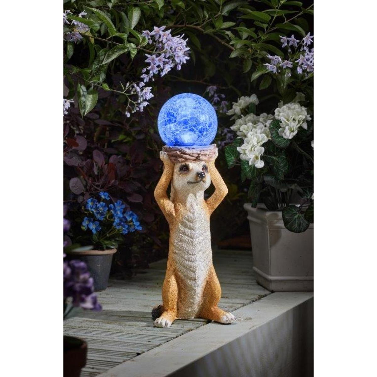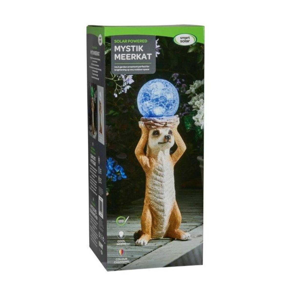 Bring a touch of charm and whimsy to your garden with the Smart Garden Mystik Meerkat. This delightful solar-powered ornament features a curious meerkat that automatically lights up at dusk, adding both personality and ambient light to your outdoor space. Perfect for gardens, flowerbeds, or patios, it’s easy to place with no wiring required, just stake it into the ground and enjoy its magical glow throughout the evening. Features: Charming garden ornament will brighten up any outdoor space Hand-painted polyresin with stunning crackle glass gazing ball White or Colour changing LED Ideal for patios, lawns and borders Charges in direct sunlight 45 x 16 x 16 cm