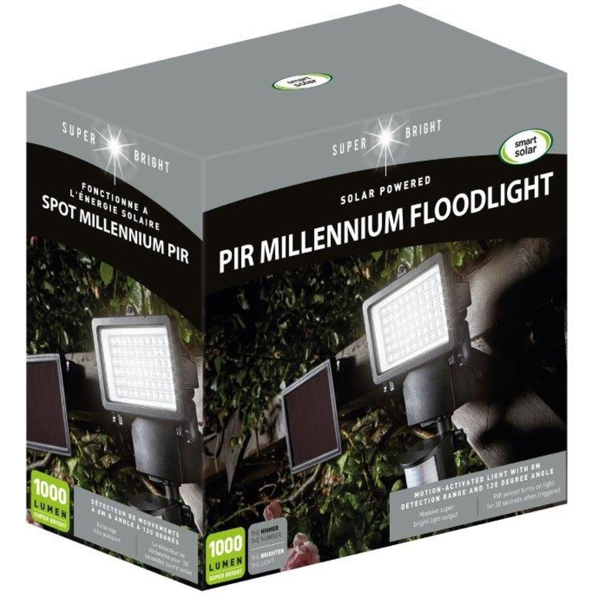 Light up large outdoor areas with the Smart Garden PIR Millennium Floodlight, delivering an ultra-bright 1000 lumens of solar-powered illumination. Ideal for driveways, gardens, and entrances, it features a PIR motion sensor that activates the light when movement is detected, providing both security and convenience. No wiring required – charges by day and automatically activates on motion after dark. A powerful and energy-efficient lighting solution for any outdoor space. Features: Creates a brilliant lighting effect PIR activated Remote solar panel Perfect for flood lighting the garden and outdoor buildings PIR sensor turns on light for 30 seconds when triggered Incredible 1000 Lumen Super Bright lighting 22.5 x 11.5 x 16 cm