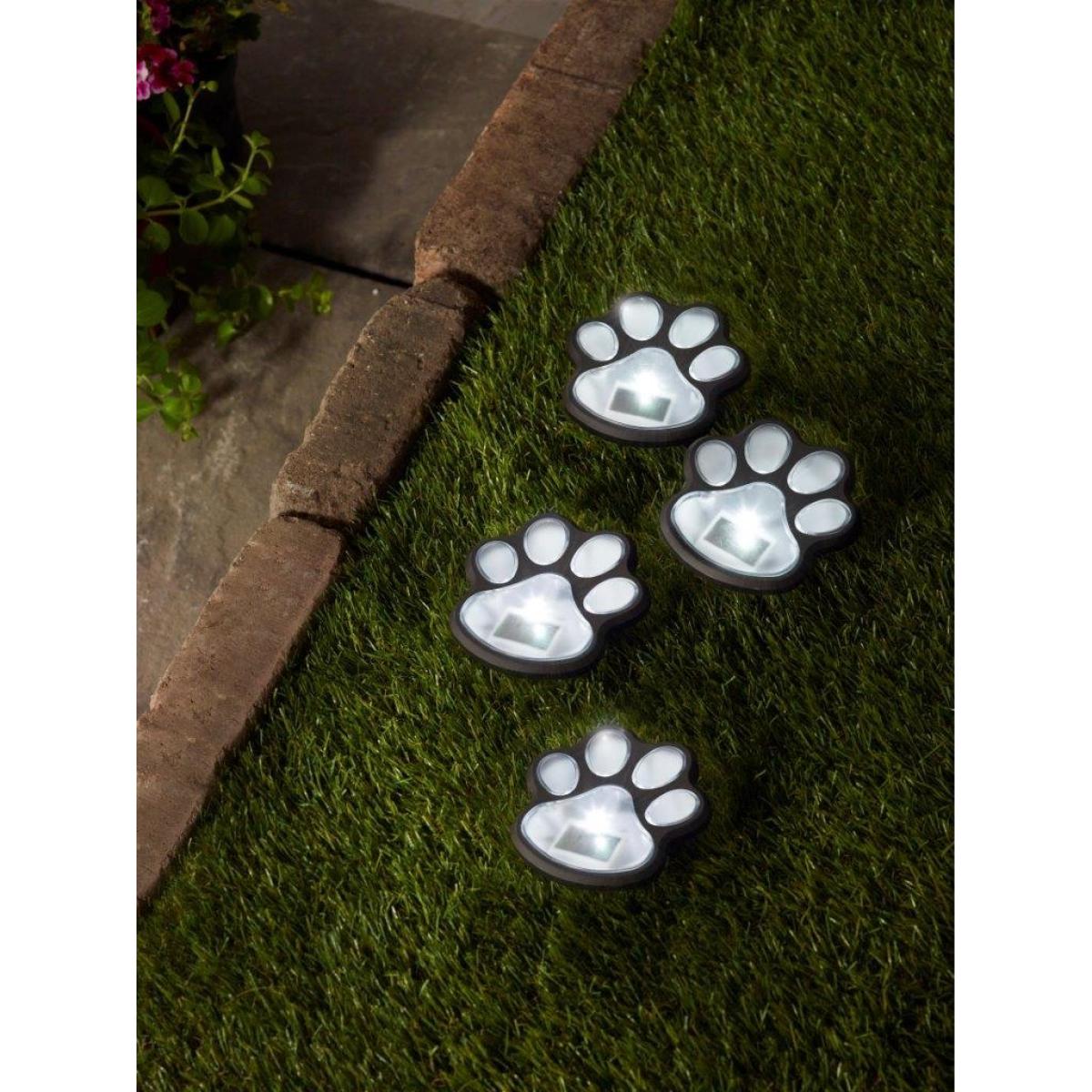 Solar Paw Print Lights – A Playful Glow for Your Garden Add a touch of whimsy to your outdoor space with these fun and charming inlit pet paw lights. Perfect for pet lovers, this set of four adorable paw prints brings a playful sparkle to gardens, pathways, or patios. Each paw charges in direct sunlight during the day and automatically lights up at night with a cool white LED, creating a delightful trail of light wherever you place them. Brighten up outdoor spaces with these fun and charming inlit pet paws Charges in direct sunlight Automatically illuminates at night Set of 4 paw prints for your garden Cool white LED Dimensions: 9 x 9 cm