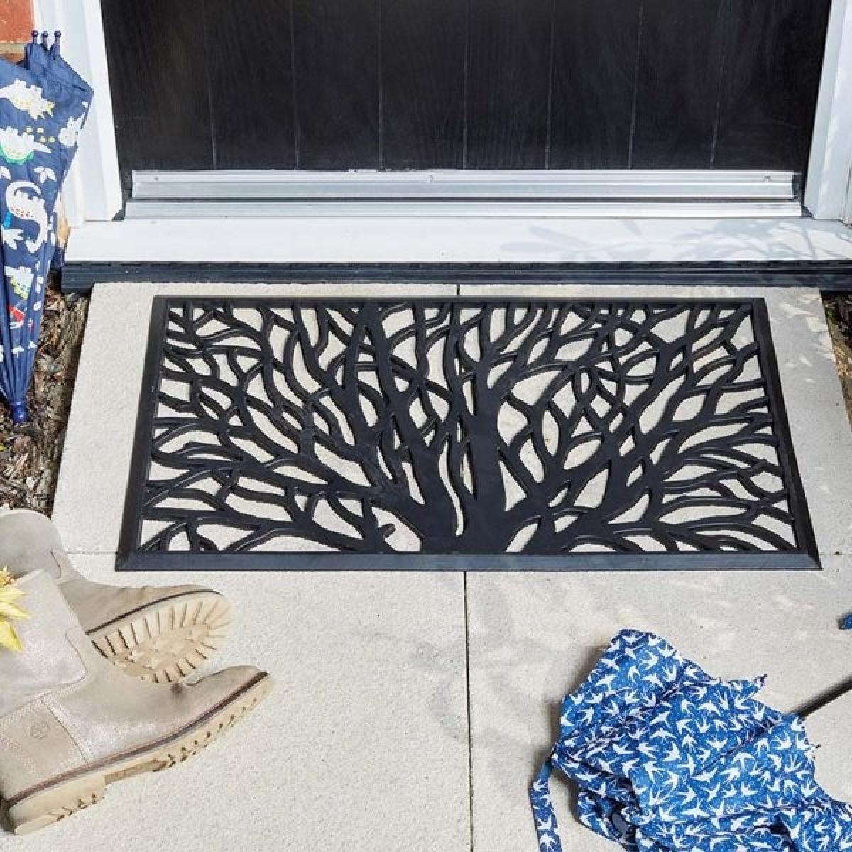 Give your guests something chic to wipe their shoes on before they enter your home. Place the attractive Wild Willow Doormat from Smart Garden on your step. Its complex tree pattern is practical as well as eye-catching, as it allows rainwater to simply drain away. Made from durable rubber, this robust mat can be safely left outside your house without incurring damage from the elements. Non-slip for safety, it's also exceptionally simple to clean. The Wild Willow Doormat measures 45cm by 75cm and is rectangular in shape. The Smart Garden Wild Willow Doormat  Key Features Made from hard-wearing rubber Non-slip and ideal for outdoor use Can be wiped clean Features an attractive tree design. Liquids drain away easily Easy to clean 45 x 75 cm