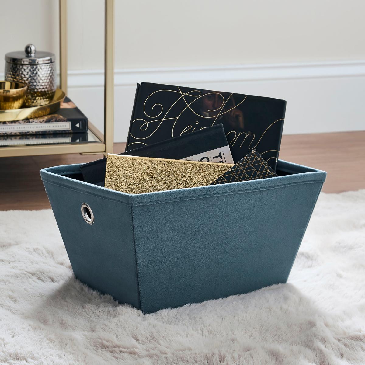 The blue velvet tapered basket is a stylish and versatile piece that adds a touch of richness to any space. I love it for its deep colour and soft texture, which bring a cosy yet sophisticated feel. It works particularly well in contemporary or industrial interiors, where it can add a pop of colour and texture without overpowering the overall aesthetic. Practical styling tips include using it to store magazines, throws, or accessories - decorating the top with a small plant or decorative object can elevate its look. Its neutral, chic appearance makes it perfect for living rooms, bedrooms, or even home offices, helping to keep clutter concealed while adding a considered design detail.