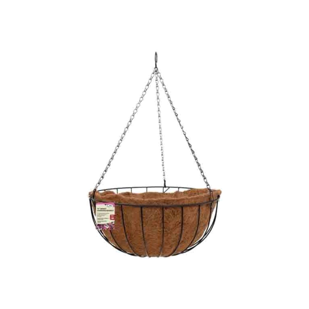 Supplied with coco liner, this hanging basket is ready for you to fill with your chosen compost and favourite bedding plants to create your very own floral display to adorn your home. Fill it with bedding blants, herbs, or trailing cherry tomatoes if you prefer. This garden hanging basket is wonderfully versatile and a staple piece in every garden. Dimensions: 14inch diameter Liner included Classic deep design for planting Holds up to 7.5 litres of compost (approx)