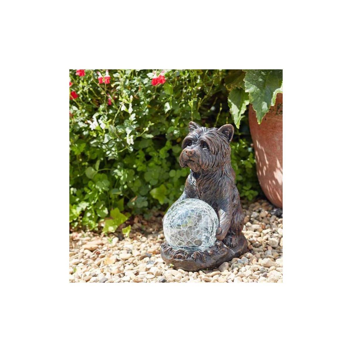 This charming hand painted polyresin garden ornament with a stunning crackle colour changing glass gazing ball will bring fun and style into your garden, decor by day, light by night.