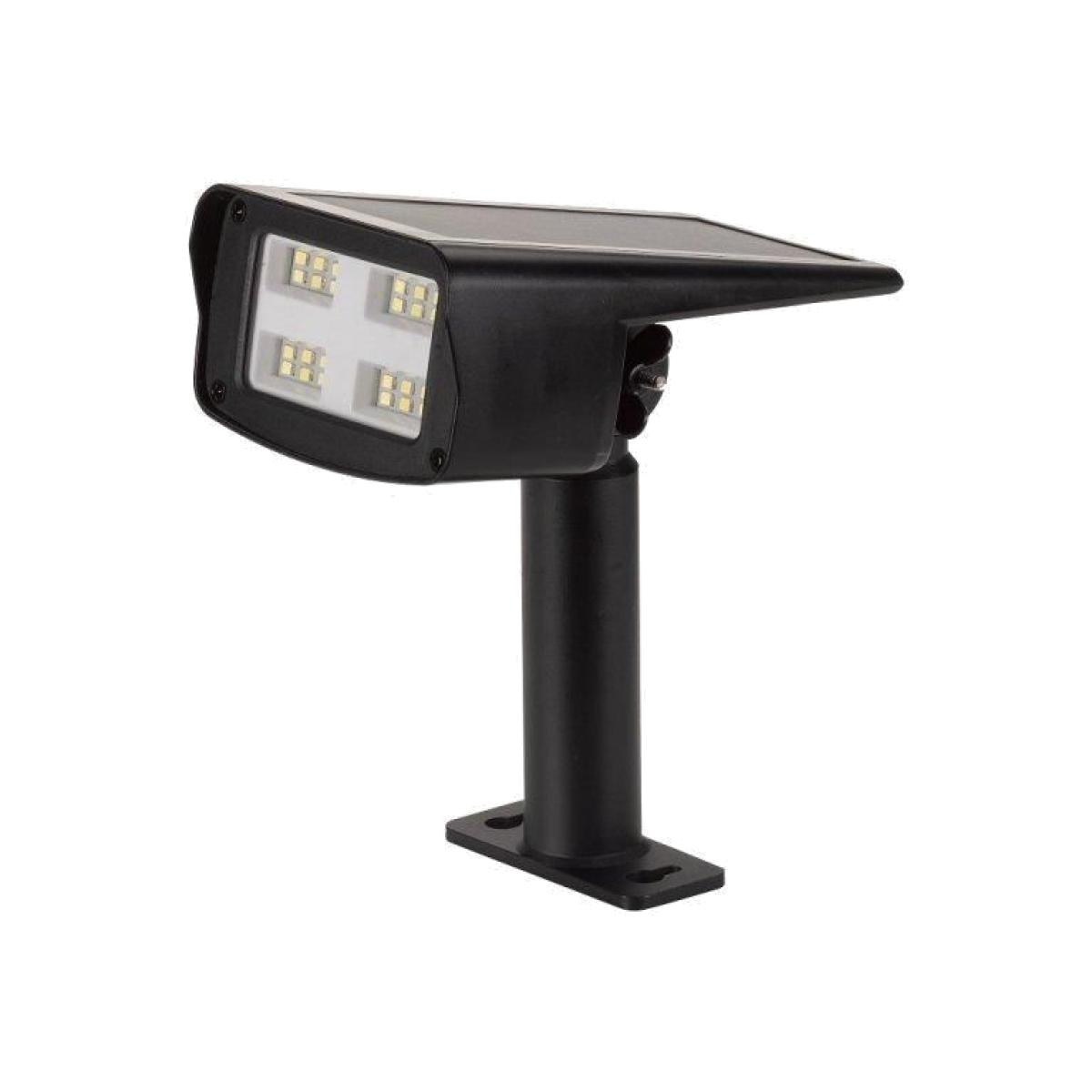 Super bright spotlight with stake Directional light is easy to adjust 50 Lumens 24 LEDs Charges in direct sunlight Automatically illuminates at dusk Can be wall mounted 30 x 14 x 9 cm