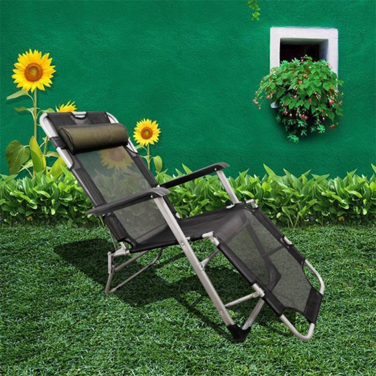 2 in 1 Foldable Reclining Chair / Sun Lounger with Pillow Features: 1. Foldable for easy transportation 2. Durable steel frame with comfortable plastic arms 3. Reclines through many positions 4. Three Level Adjustment 5. Features an open weave elastic lacing for breathability 6. Padded, adjustable and removable headrest 7. It is ideal for those lazy days of summer 8. The durable design makes the chair great for poolside lounging, patios, backyards and more. 9. Suitable for all year round Material: Waterproof textline Fabric Dimension: 178cm ( L ) x 60cm ( W ) x 78cm ( H ) Folds down to: 97cm x 61cm x 12cm for easy storage