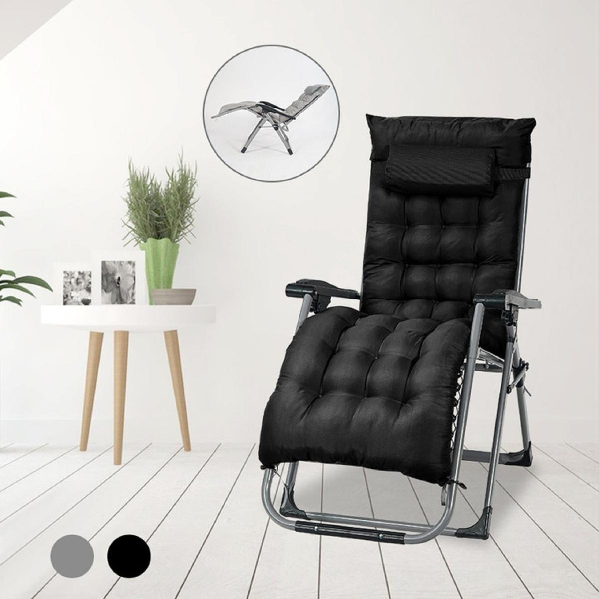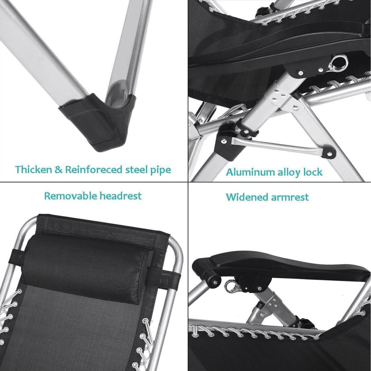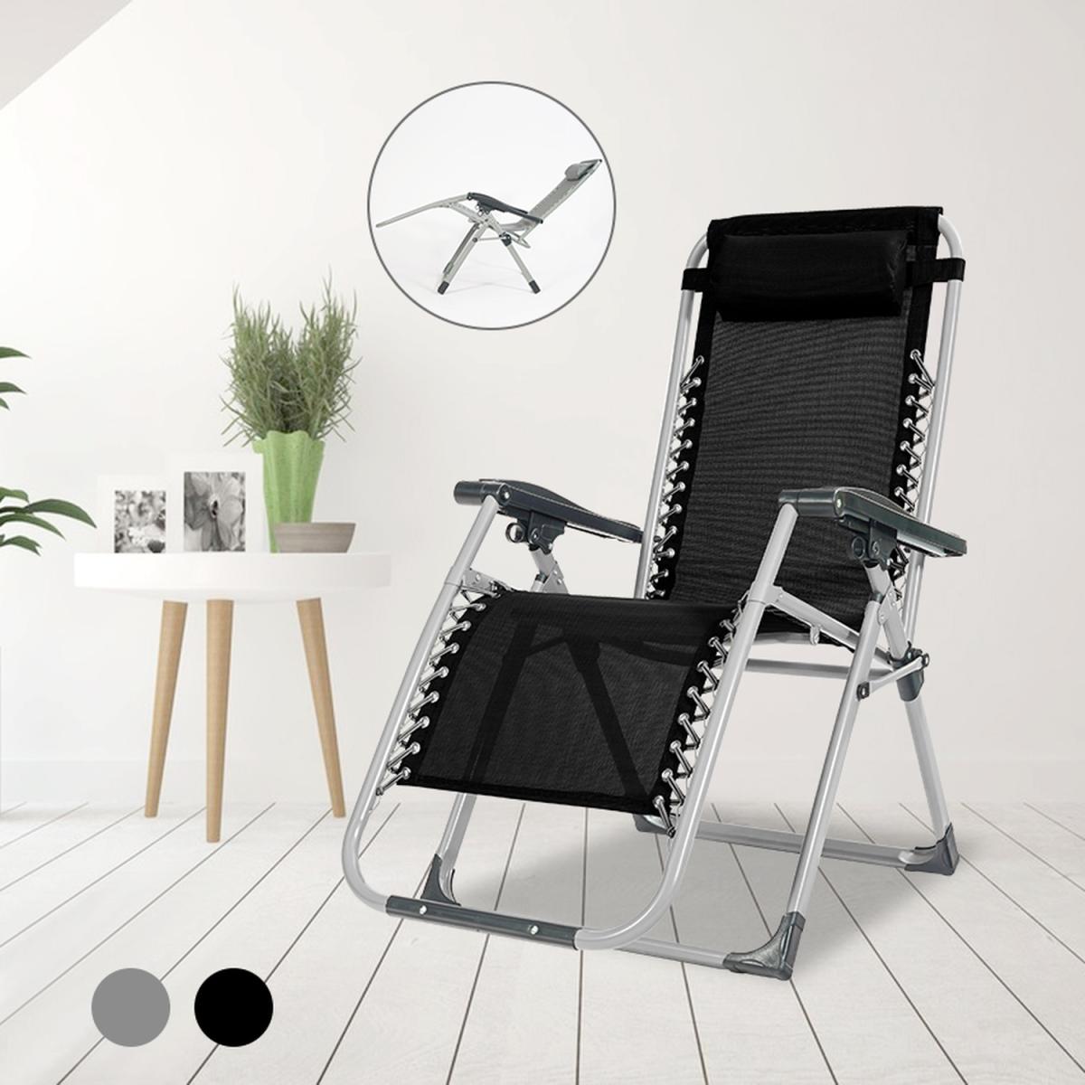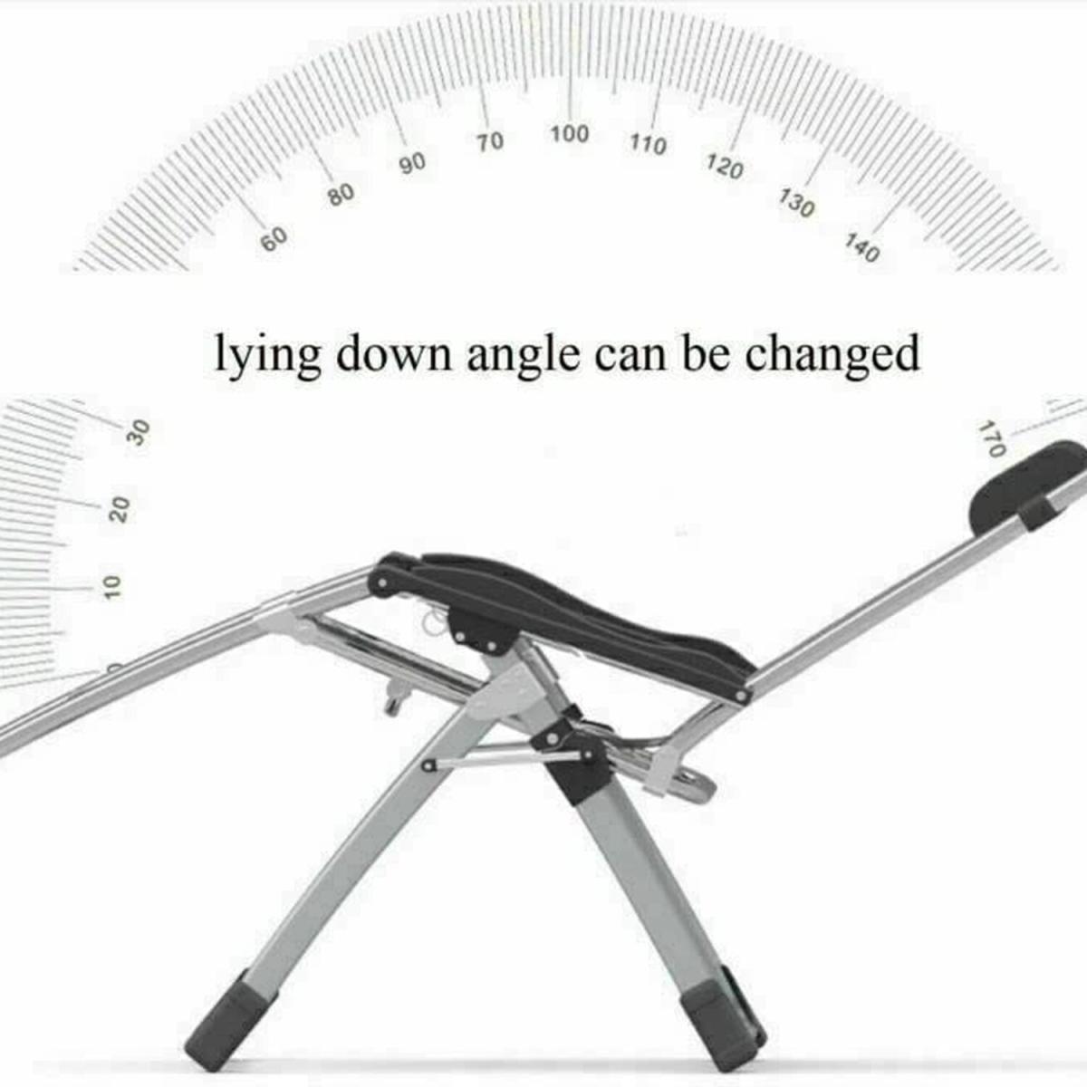 Zero Gravity Foldable Reclining Chair / Sun Lounger with Cushion & Pillow Features:1. Foldable for easy transportation 2. Durable steel frame with comfortable plastic arms 3. Reclines through many positions 4. Includes adjustable headrest and padded cushion 5. Features an open weave elastic lacing for breathability 6. Reclining function : 90-166 Degree 7. It is ideal for those lazy days of summer 8. The durable design makes the chair great for poolside lounging, patios, backyards and more. 9. Suitable for all year round Material: Durable waterproof textline Fabric Dimension: 180cm ( L ) x 40cm ( W ) x 65cm ( H ) Folds down to: 95cm x 68cm x 15cm for easy storage