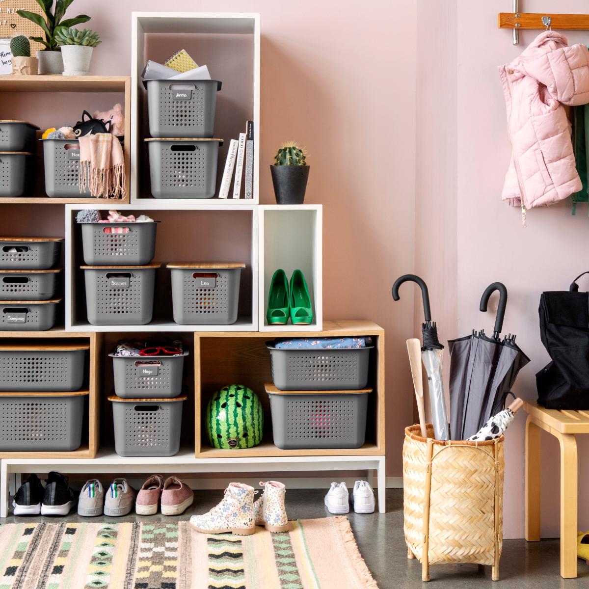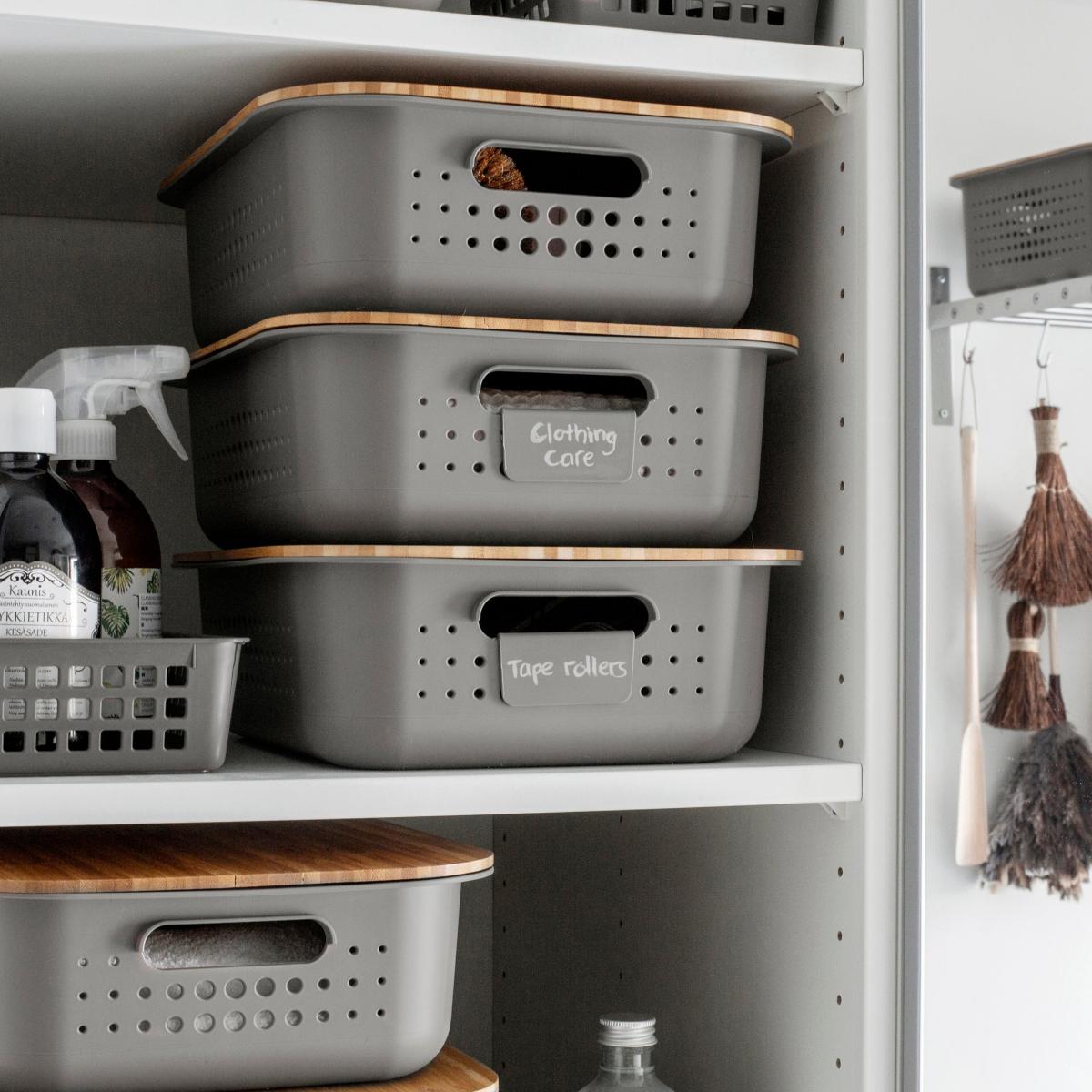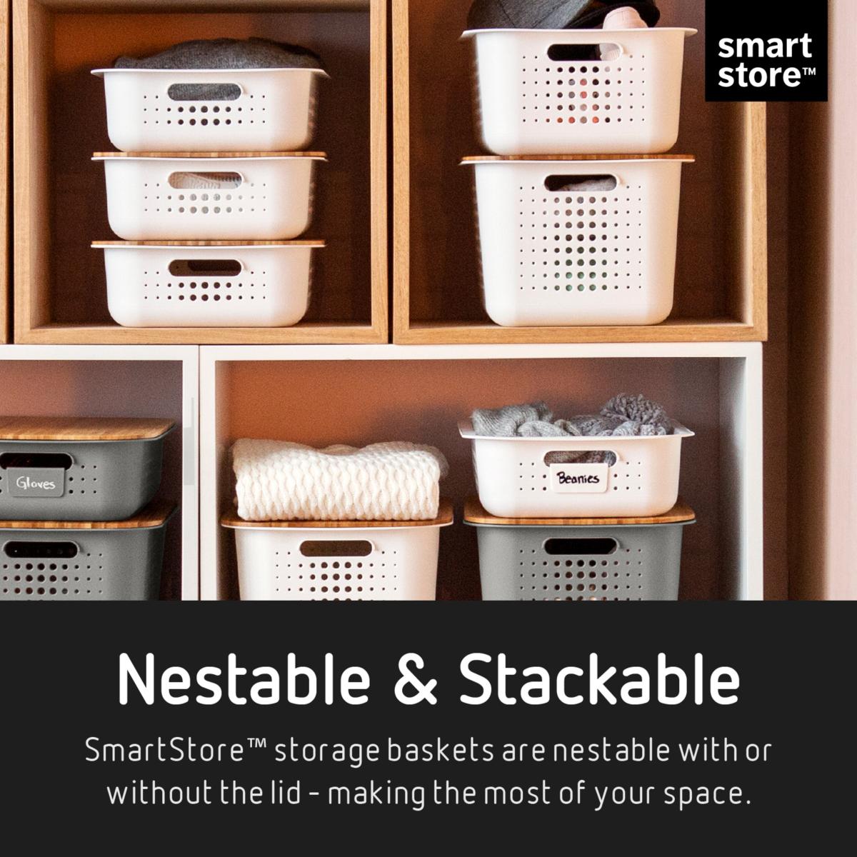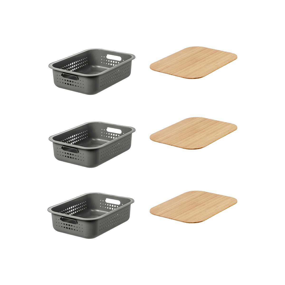 SmartStore Recycled Set of 3 6L Storage Baskets with Bamboo Lids Grey