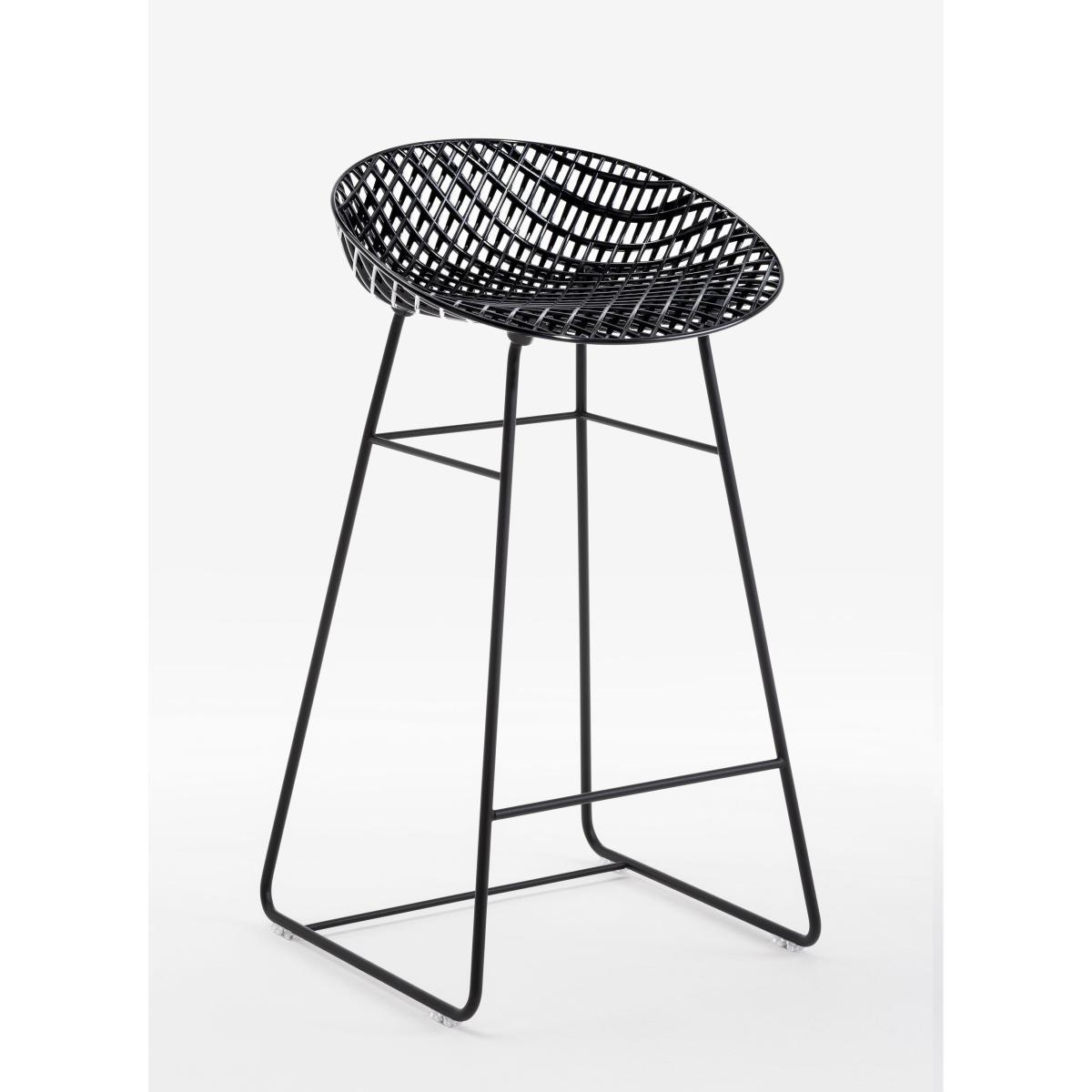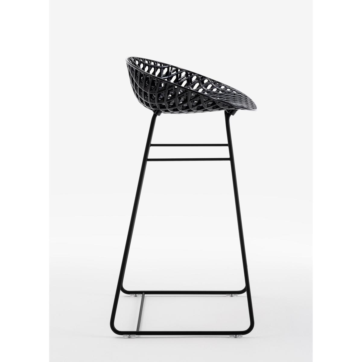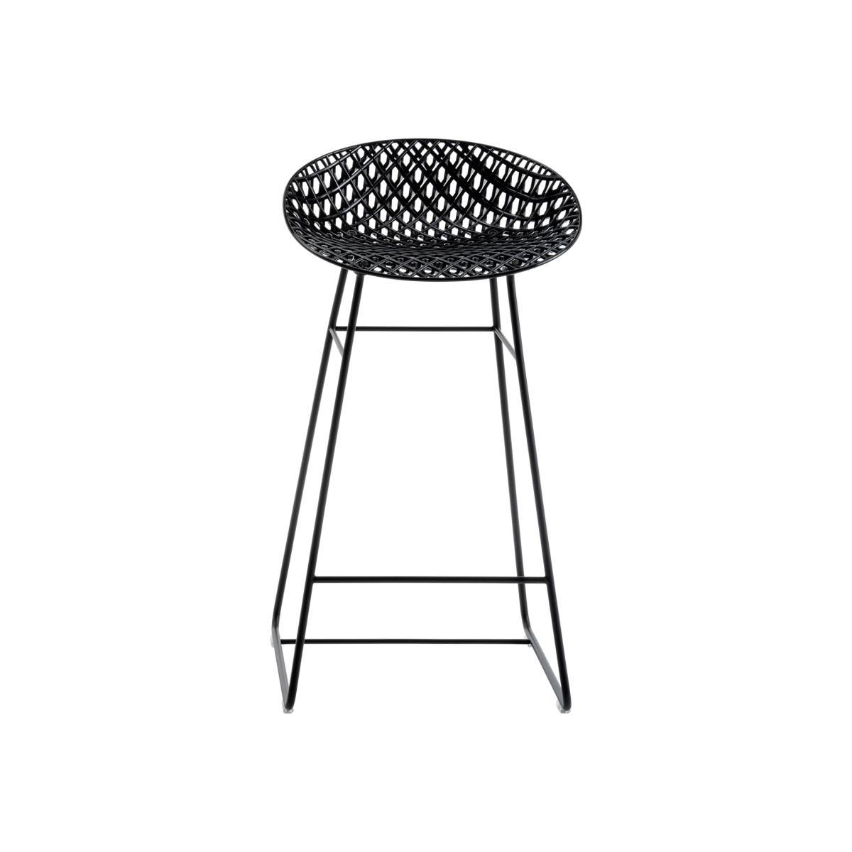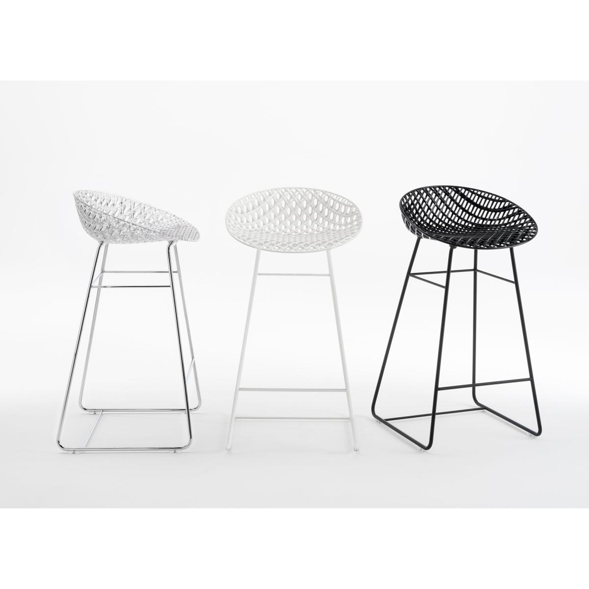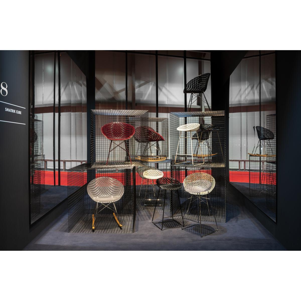 To make the Smatrik stool, Japanese designer Tokujin Yoshioka put his creativity as well as his sense of experimentation to good use with Kartell. This stool is an intense mix of design and technology. Made of polycarbonate, the double-walled openwork seat looks like lace: an extremely refined effect offering surprising visual lightness. This seat is made using an innovative injection moulding technology that provides a 3D effect. The structure obtained takes the form of a three-dimensional lattice: the two layers of polycarbonate, superimposed and crossed, give rise to a seat with an ethereal volume. The multiple openings provide a graphic, delicate pattern that plays with transparency, light and shadow. The varying hole sizes give the impression of movement. The base consists of a steel wire structure, fine and delicate. A long study and design process allowed such a product, so prodigious in plastic material, to be made on an industrial scale for the first time. Smatrik has unique features in terms of strength, durability and flexibility defined by its exclusive production technology. The Italian brand says: "The mix of creative design and technological research is part of Kartell's DNA. New materials constantly pose new challenges which the company has taken on for many years with large investments in order to keep surpassing new limits". This stool can be used outdoors.