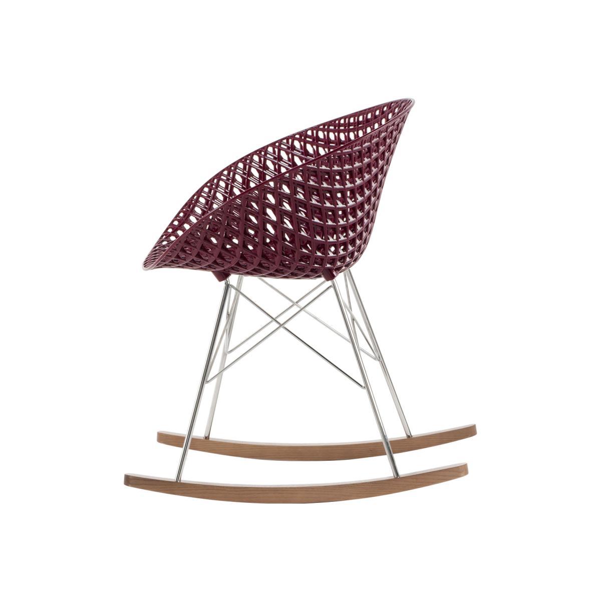 Tokujin Yoshioka presents his latest collection for Kartell: the Matrix chair. The Japanese designer has provided the brand with his creative ideas, his identity as well as his experimentation in order to offer a chair that exceeds the limits of the usual design of a product. A real work of art, this seat is available in three innovative and creative versions (a chair for indoors, outdoors and a rocking chair) which impress us equally due to their design and their technical feats. Matrix is made from an innovative 3D frame, offering an extremely sophisticated effect and a surprising visual lightness. The mould from which it is made is able to recreate a three-dimensional, overlapping and criss-crossed mesh: thanks to the special injection technology, the polycarbonate layers create a structure taking on the forms of a wire mesh. The rocking chair is therefore made up of a polycarbonate seat, a chromed steel mesh base and stained-oak finish furniture glides. By simply being there, Matrix with its clean and perfectly sophisticated lines, will enhance your room. A long study and design process has, for the first time, allowed a prodigious product made from plastic material to be created on an industrial scale. Matrix has unique features in terms of resistance, durability and flexibility defined by its exclusive manufacturing technology. The Italian brand confirms: "The combination of creative design and technological research is a part of Kartell's DNA. New materials constantly pose new challenges that the company has taken on for many years with large investments in order to surpass new limits all the time".
