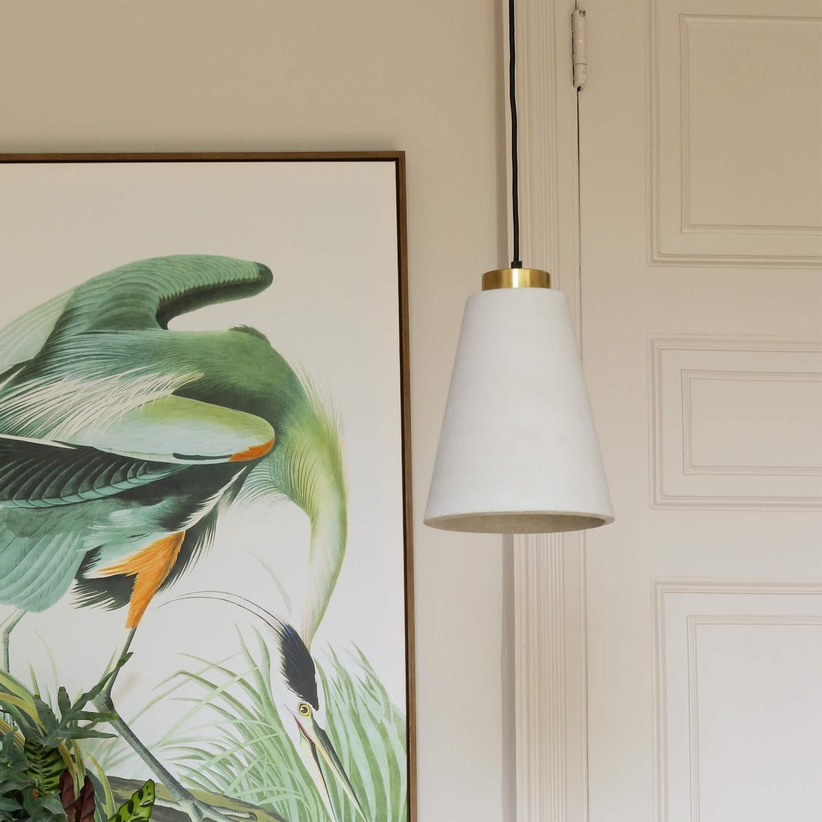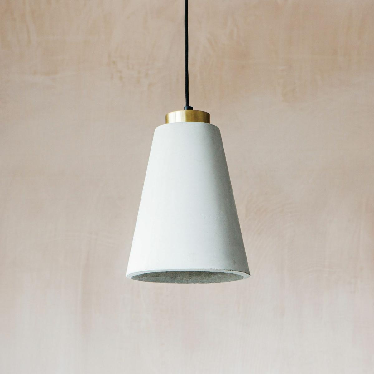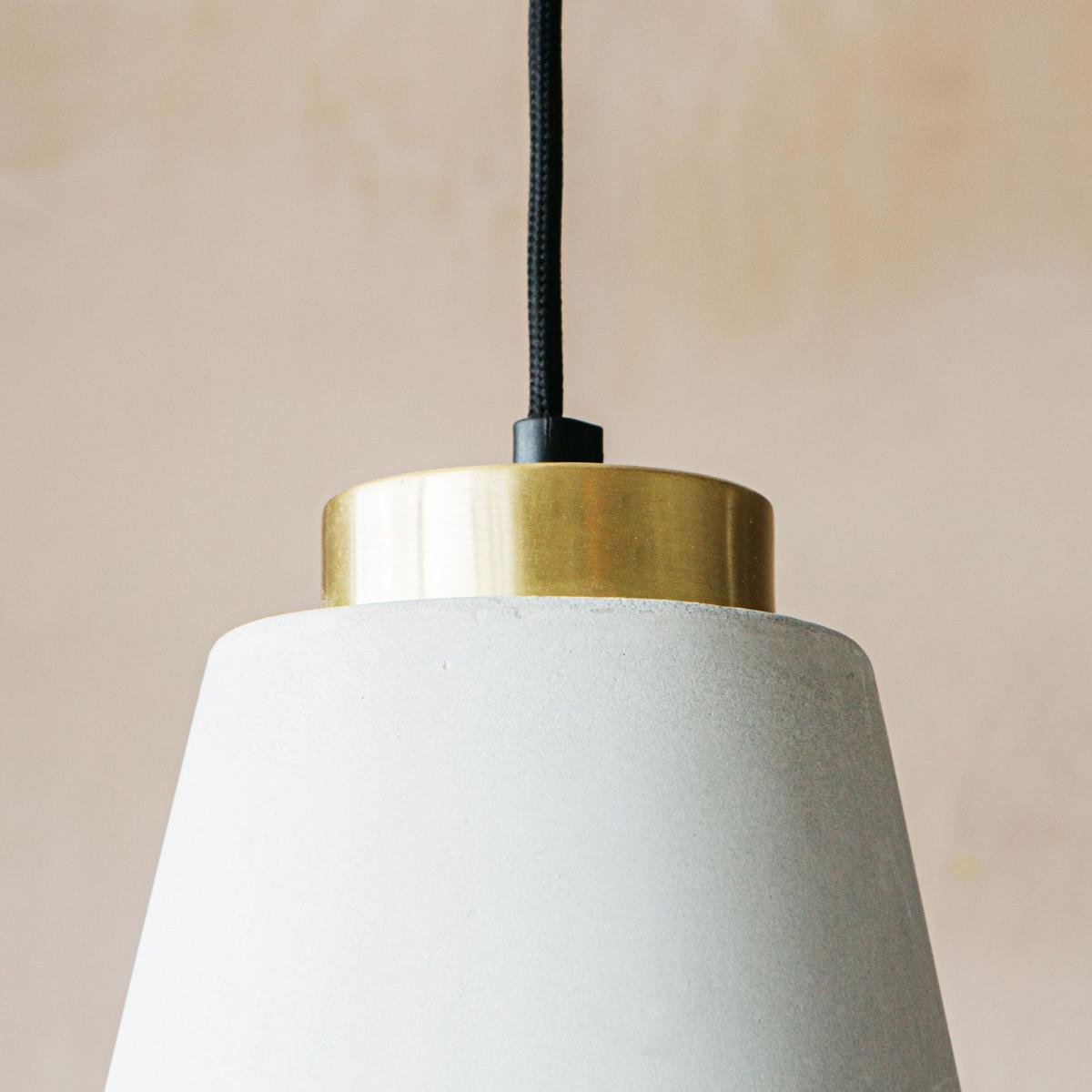 A sculptural and smooth concrete ceiling lightwith gleaming gold metallic accents. Cluster in groups or let it shine as a stand out piece.