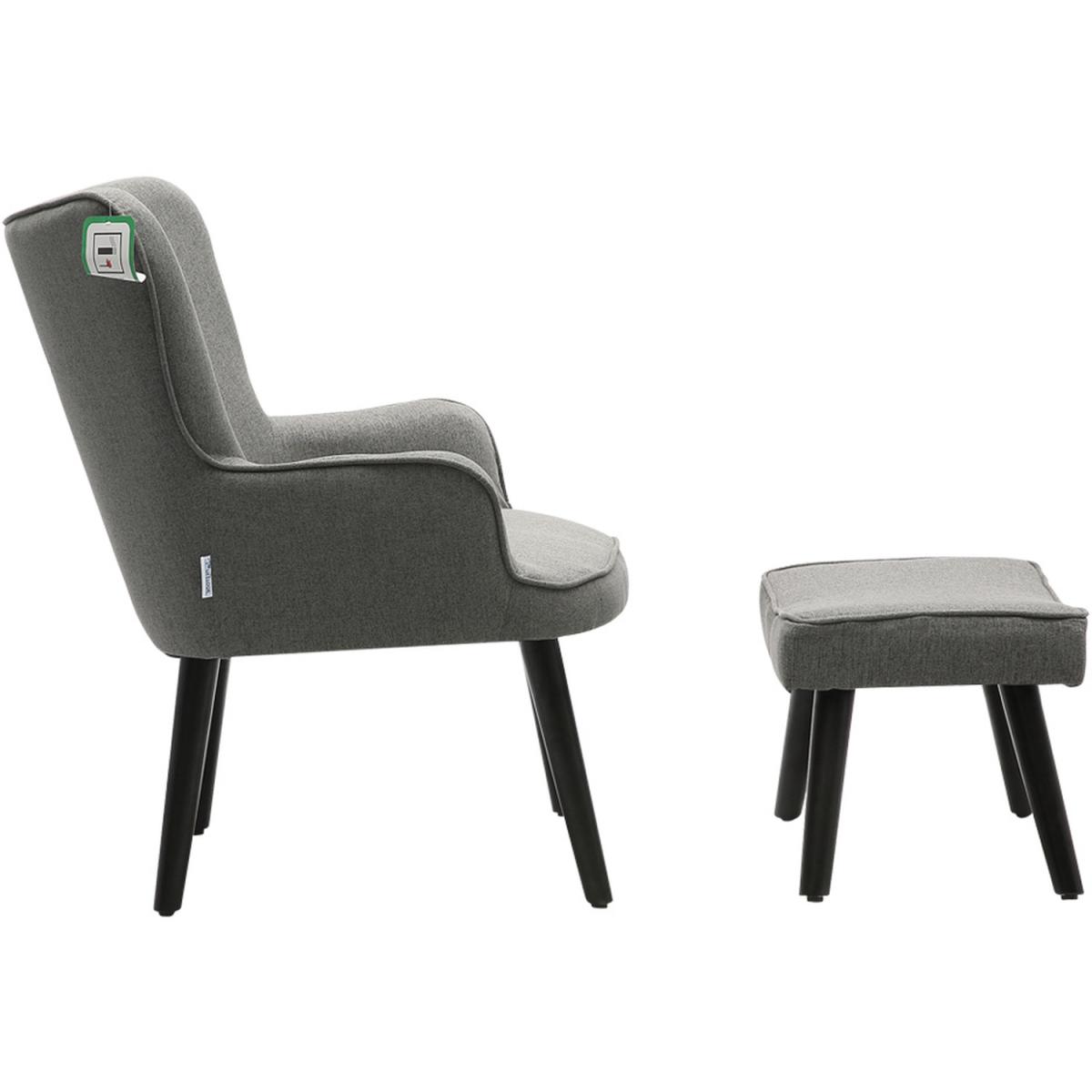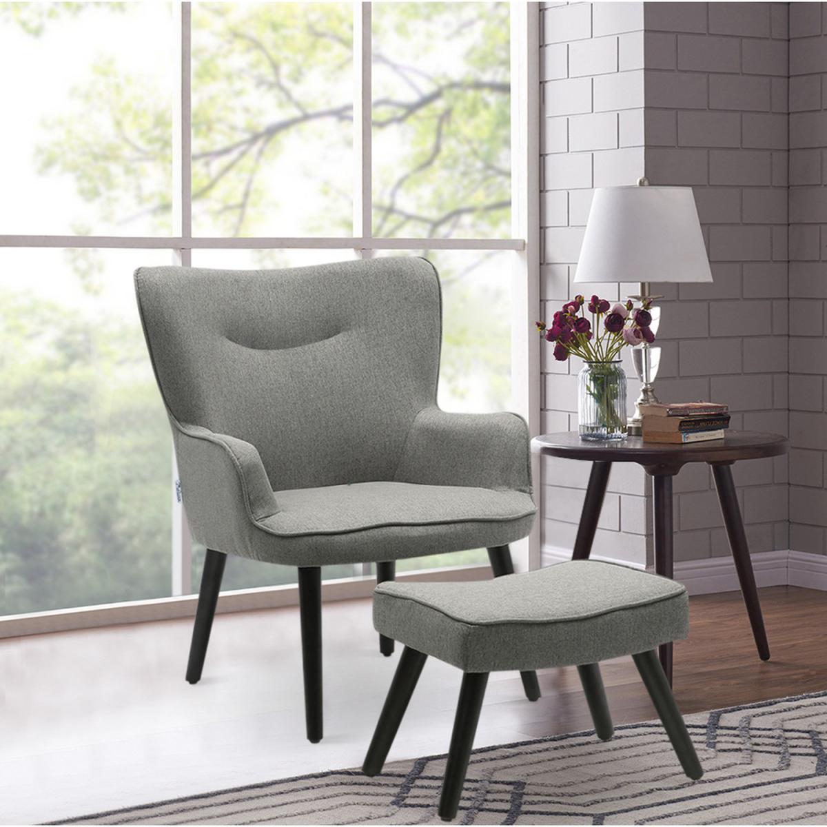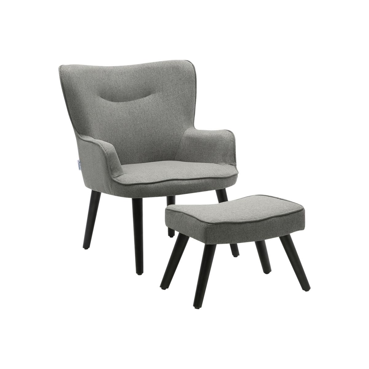 I love this chair and footstool for their versatile, modern silhouette paired with a timeless grey fabric. The muted tone makes it easy to integrate into both contemporary and more classic interiors. It works particularly well in cosy reading nooks or as an accent piece in living rooms, bringing a touch of comfort without overwhelming the space. Practical styling tips include layering with textured cushions or throws for added visual interest, and pairing it with light or wood-toned furniture for a balanced, inviting look. Its compact size makes it ideal for smaller rooms or as a stylish addition to a larger seating area.