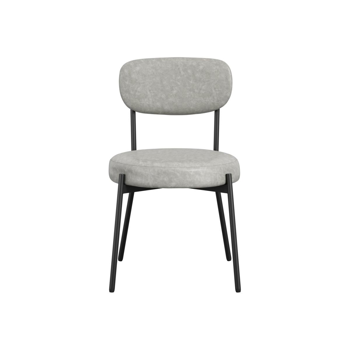 * Modern industrial design* Practical PU fabric* Comfortable padded seat* Choice of colors* Matt black legs Smith Faux Leather Set of 2 Dining Chairs The Smith Faux Leather Set of 2 Dining Chairs offers a modern industrial design with practical PU fabric and comfortable padded seats. These chairs, with matt black legs, are available in a choice of colours.