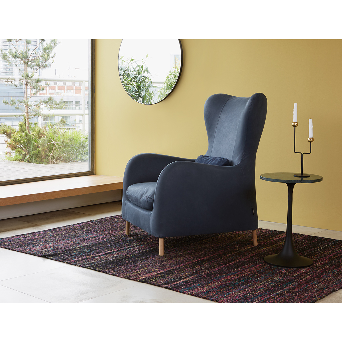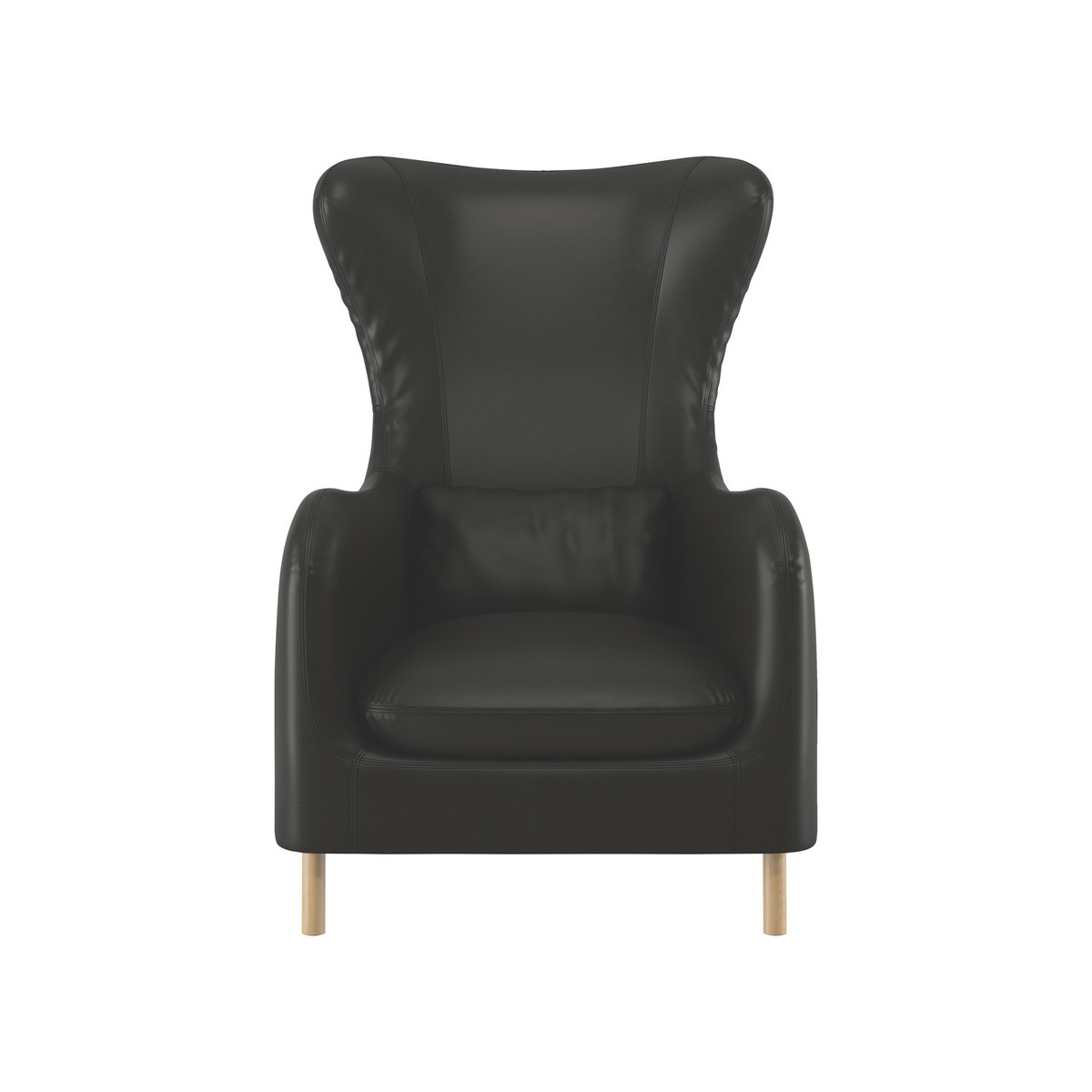 Hand crafted in Italy, the Smithfield black leather wingback armchair has a sculptural silhouette with soft, feather-filled seat cushion for comfort. An addition to the iconic Smithfield range, Aaron Probyn's fresh, fluid take on a classic design has a metal frame for strength with rounded arms and a high back that hugs the body. Exclusive to Habitat and handmade using age-old techniques, the Smithfield wingback is available in leather and fabric in a choice of colours and comes with a suede scatter cushion for textural contrast.