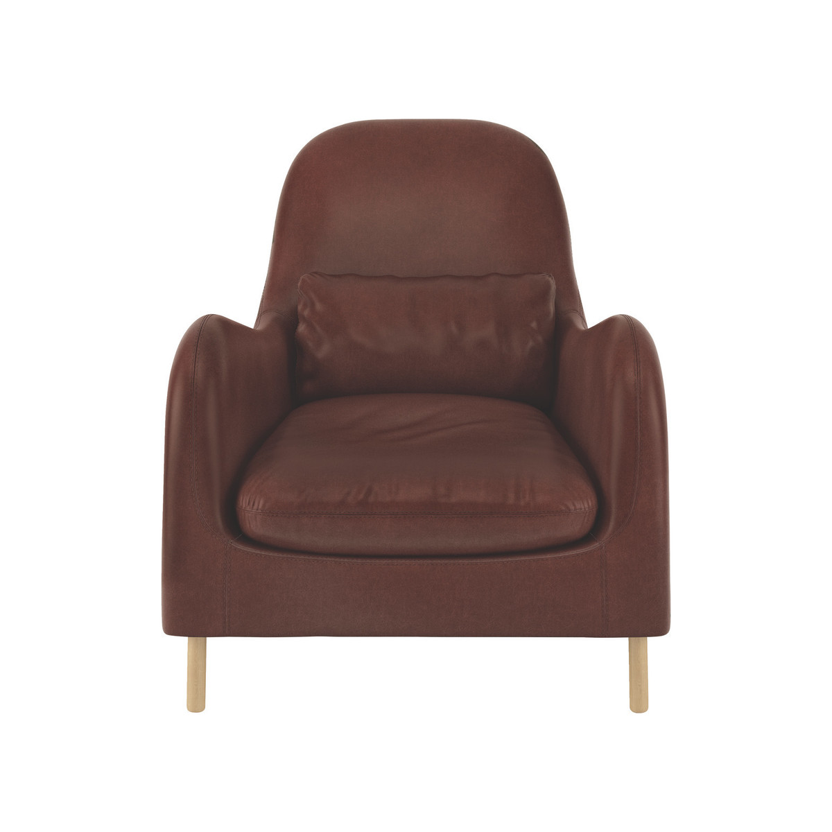 Hand crafted in Italy, the Smithfield tan leather armchair has a soft, sculptural silhouette with feather and fibre filled seat cushions for comfort. Designed by Aaron Probyn for the Habitat Design Reunion project to celebrate our 50th birthday, the Smithfield chair is inspired by the era of classic car design and is hand crafted in a very traditional way that uses age old techniques. The lounge chair features rounded rolled arms and low back, creating a continual line that is punctuated by the delicate wooden feet. Equally suited to a traditional or modern environment, the Smithfield armchair is a classic design that will transcend fashions and current trends. The lounge chair is upholstered in aniline leather, which allows the natural characteristics of the hide to show through and it is the most premium natural looking leather available on the market.
