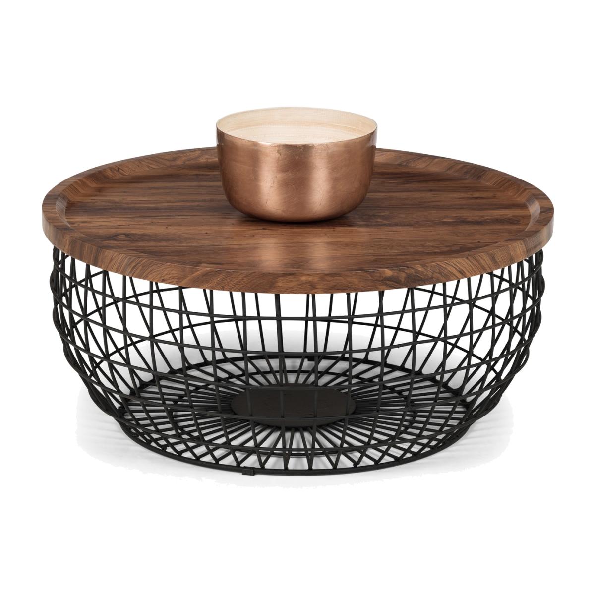 Smithson Basket Coffee Table with Wooden Top & Black Metal Frame - Julian Bowen