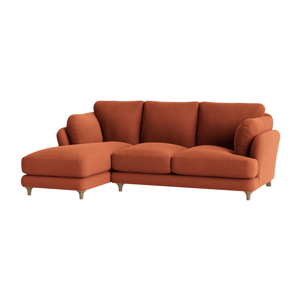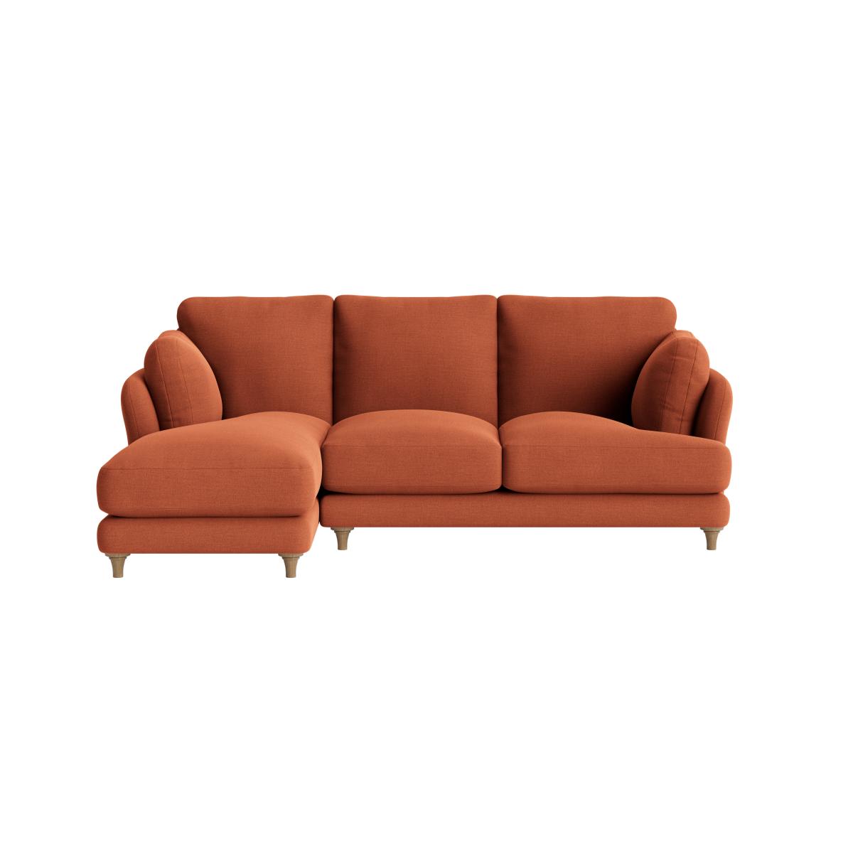 I love the Smithy Chaise for its versatility and modern silhouette, making it a great addition to a variety of interiors, from contemporary to mid-century styles. Its corner design maximises space, especially in open-plan living areas, while providing ample seating for family and guests. Styling tips include pairing it with textured cushions and a cosy throw for a relaxed vibe, or complementing it with a sleek coffee table and minimalist accessories for a streamlined look. Its warm colour also works well with earthy tones or contrasting pops of colour, making it a flexible focal point in the living room. Practicality-wise, the generous seating offers comfort, and its clean lines contribute to a uncluttered, inviting space.