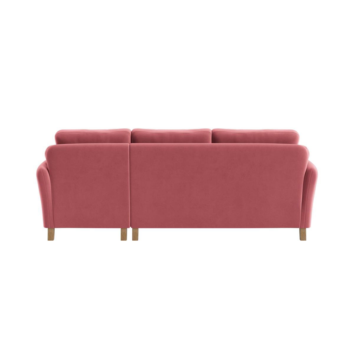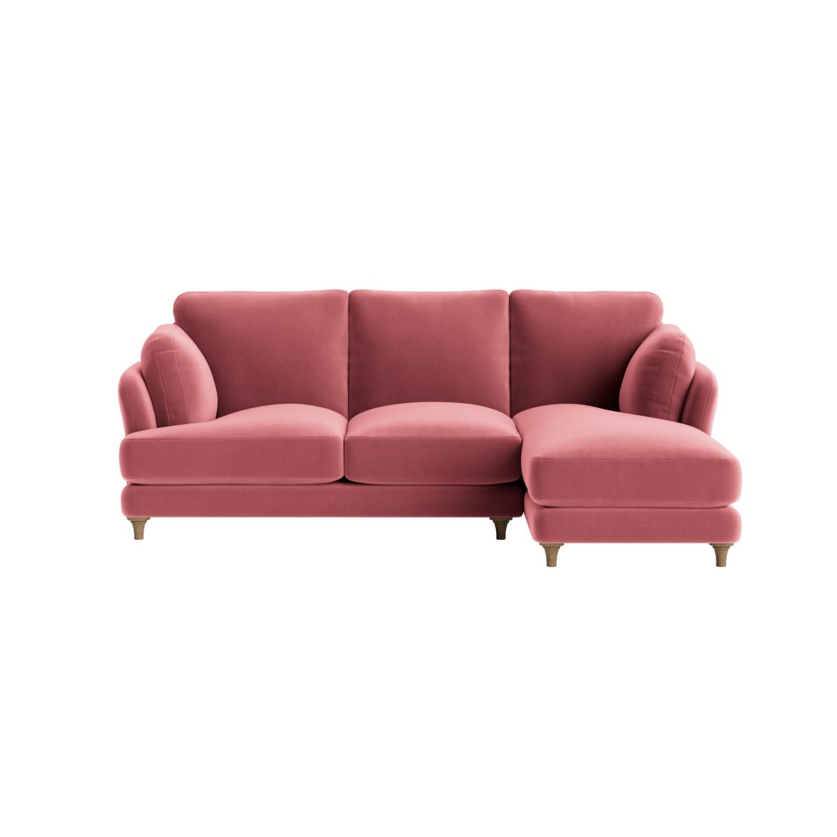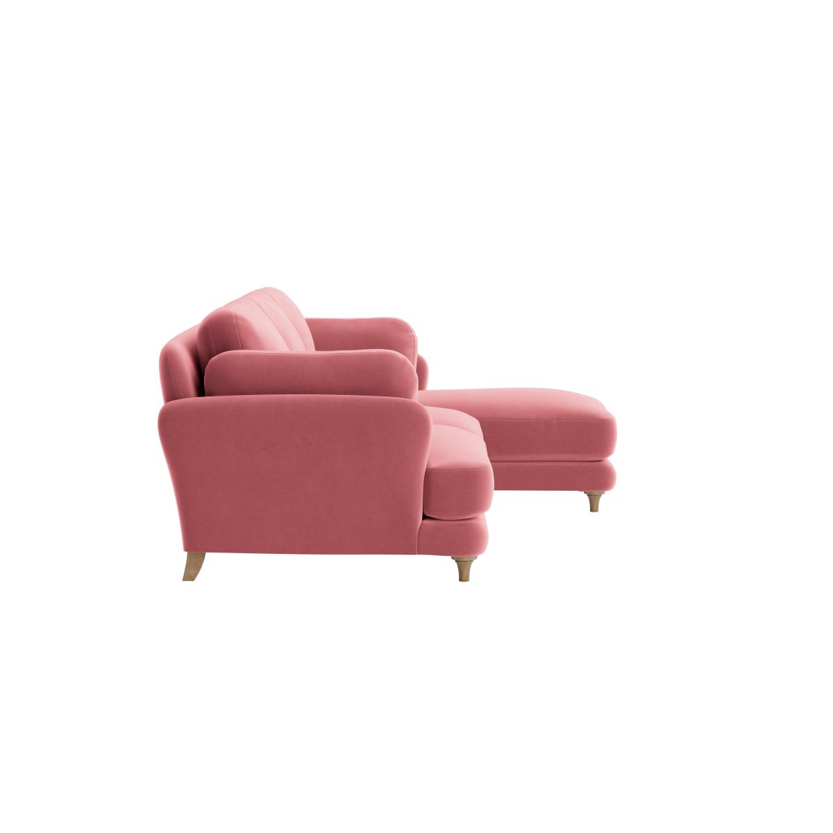 I love this sofa for its versatile charm and cosy appeal, making it a great choice for both contemporary and traditional interiors. Its soft pink hue adds a subtle pop of colour without overwhelming a space, making it ideal for light, airy rooms or even modern eclectic schemes. The chaise offers excellent relaxation and maximises seating, perfect for family living or entertaining guests. For styling tip, consider pairing it with textured cushions and layered throws to bring in warmth and personality. It works well with neutral tones for a calm, understated look, or bold patterns and colours for a more vibrant vibe. Keep the surroundings bright and uncluttered to let this charming piece be the focal point.