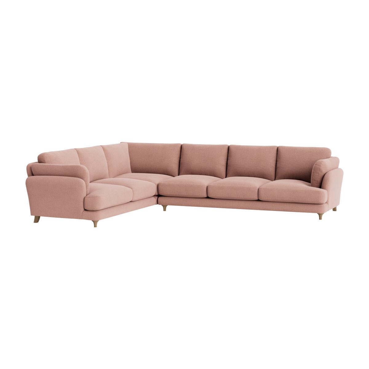 I love the Smithy corner sofa for its versatile design and inviting silhouette, making it a great anchor piece in both contemporary and traditional interiors. Its soft, blush upholstery adds a touch of warmth and subtle colour, while its spacious layout is ideal for family living or entertaining. For styling tips, consider pairing it with textured throw pillows and layered rugs to create cozy zones. It works particularly well in open-plan living spaces or larger rooms where its shape can define different seating areas, and selecting cushions in contrasting or complementary colours can add visual interest. Its understated elegance makes it adaptable, ensuring it remains a stylish staple for years to come.