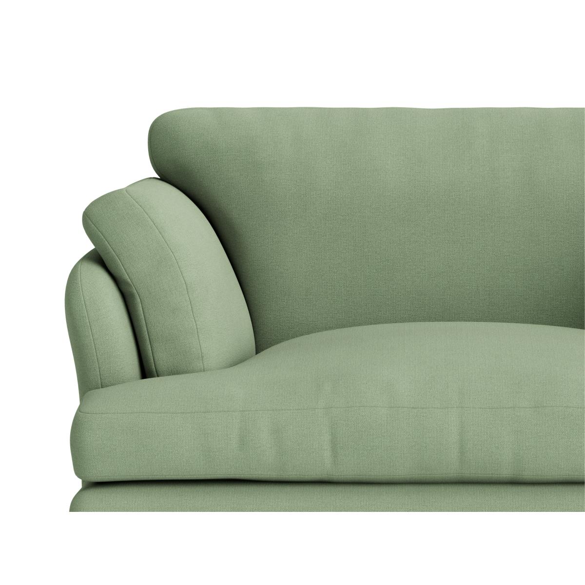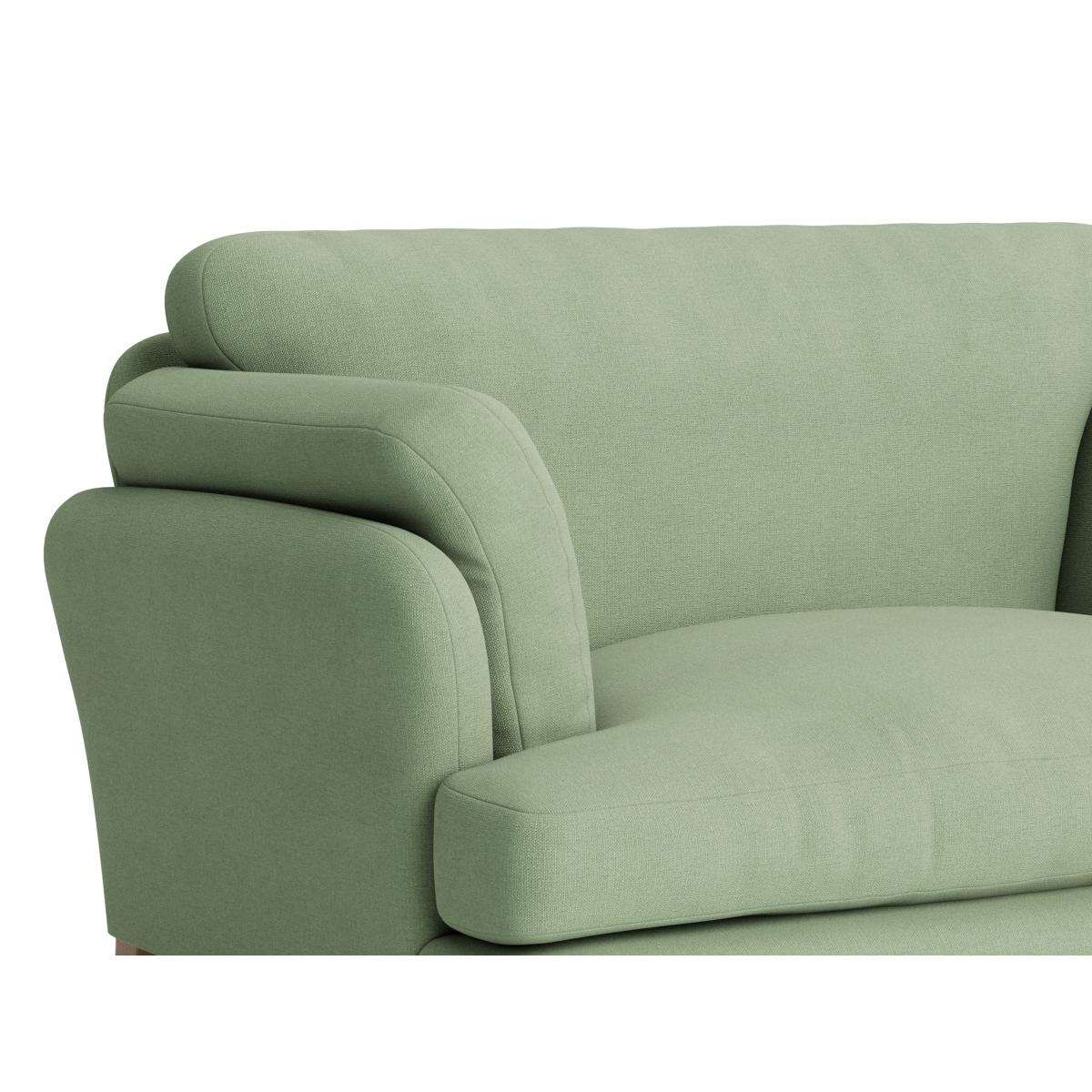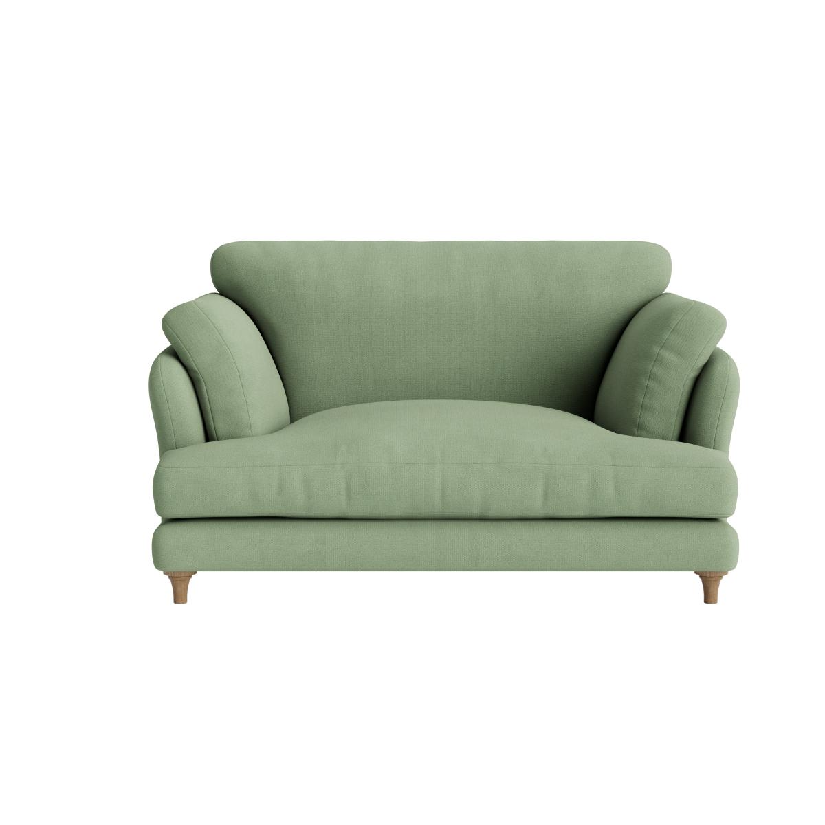 I love this little love seat for its vintage charm and its versatile silhouette, which works well in both contemporary and more traditional interiors. Its soft, pastel green hue brings a fresh, inviting feel to living rooms or cosy corners. When styling, it pairs beautifully with neutral tones and natural materials like wood or linen for a relaxed look, or can be combined with brighter accessories for a playful touch. Practical tips include using scatter cushions to add colour or texture, and keeping the surrounding decor minimal to let the soft shape and colour of the sofa take centre stage. Its compact size makes it ideal for smaller spaces or as an additional seating option in open-plan rooms.