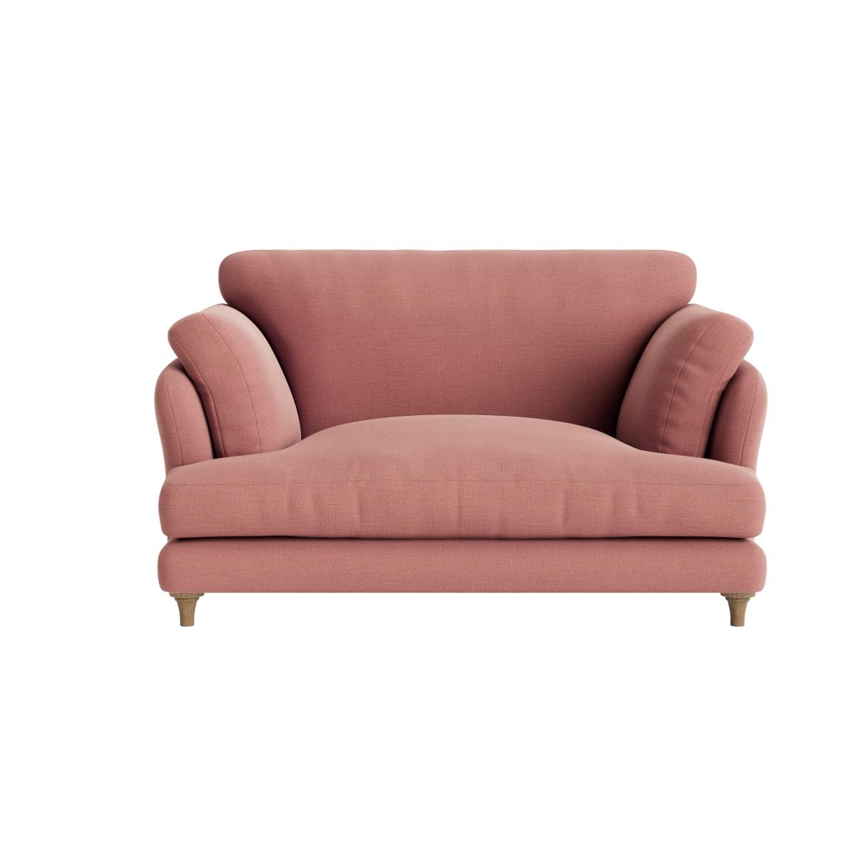 I really like the little love seat - it’s a versatile choice that works well in both modern and more traditional interiors. The soft pink hue adds a gentle pop of colour without overwhelming a space, making it ideal for cosy living rooms or even a chic bedroom sitting area. When styling, consider pairing it with neutral or muted tones to let the sofa be the focal point, or with bold accessories for a more eclectic vibe. Its compact size is practical for smaller spaces, and the plush fabric invites comfort. To keep the look polished, add textured cushions or a throw that complements your overall colour palette. Overall, it's a smart piece for creating inviting corners and adding a touch of colour to your interior.