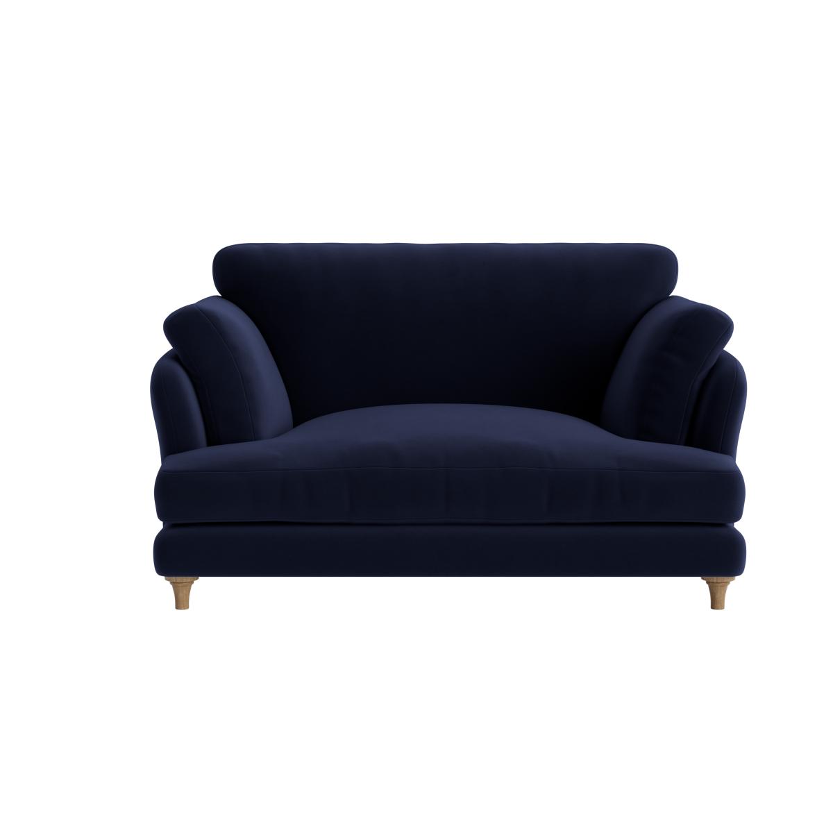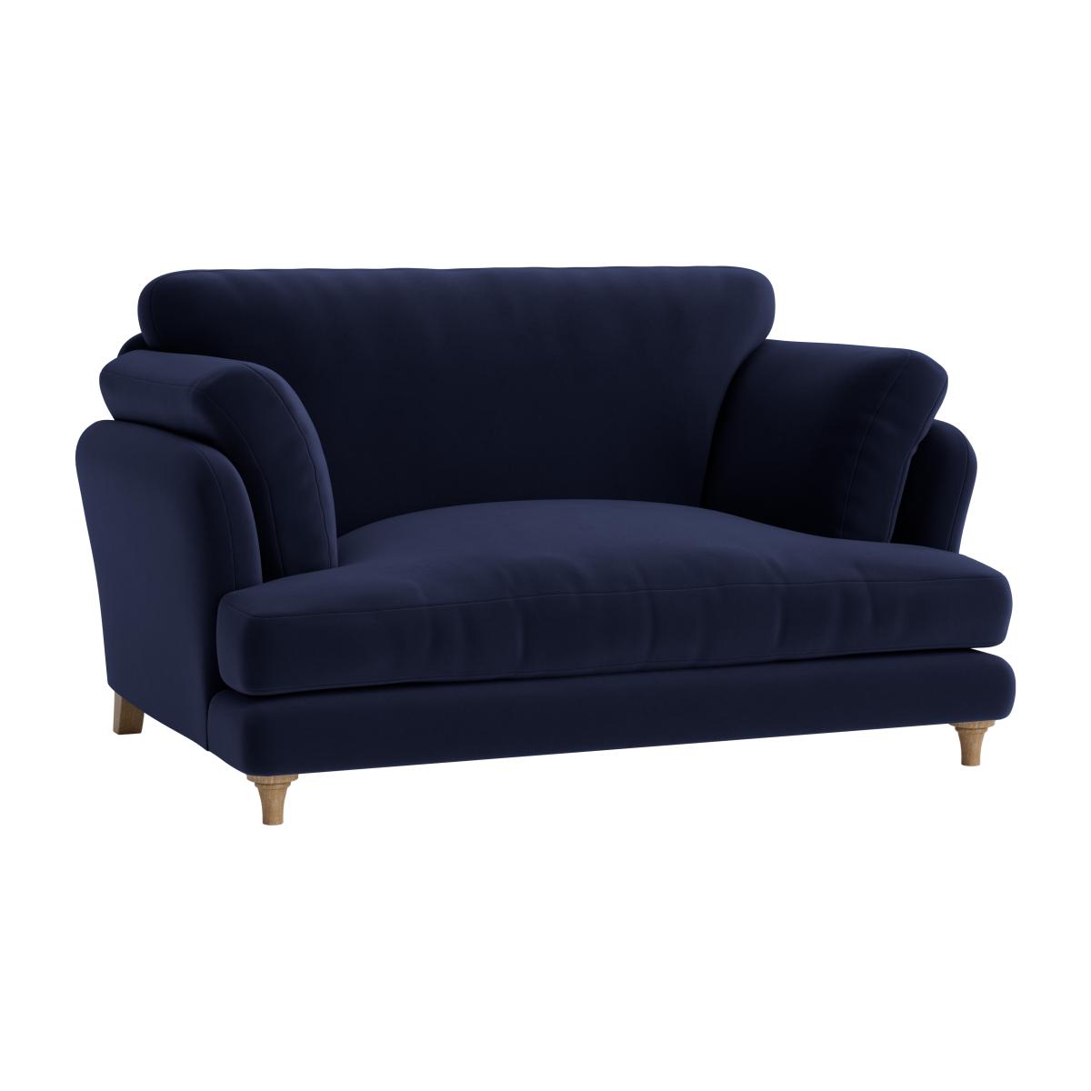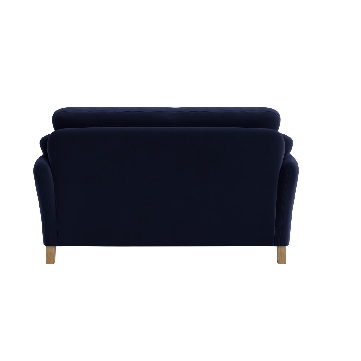 I love this love seat for its classic silhouette and versatile design, which makes it a real asset in a variety of interiors. Its deep blue colour adds an element of sophistication, working particularly well in contemporary, art-deco, or even traditional schemes when paired with richer tones or metallic accents. Practical styling tips include stacking a couple of patterned or textured cushions to add warmth and comfort, or placing it alongside a contrasting fabric armchair or coffee table to create a layered, inviting setting. Its size makes it an ideal choice for smaller living rooms, cosy corners, or open-plan spaces, providing plush seating without overwhelming the room. Overall, it’s a timeless statement piece that pairs well with both bold colour palettes and more muted, subdued interiors.