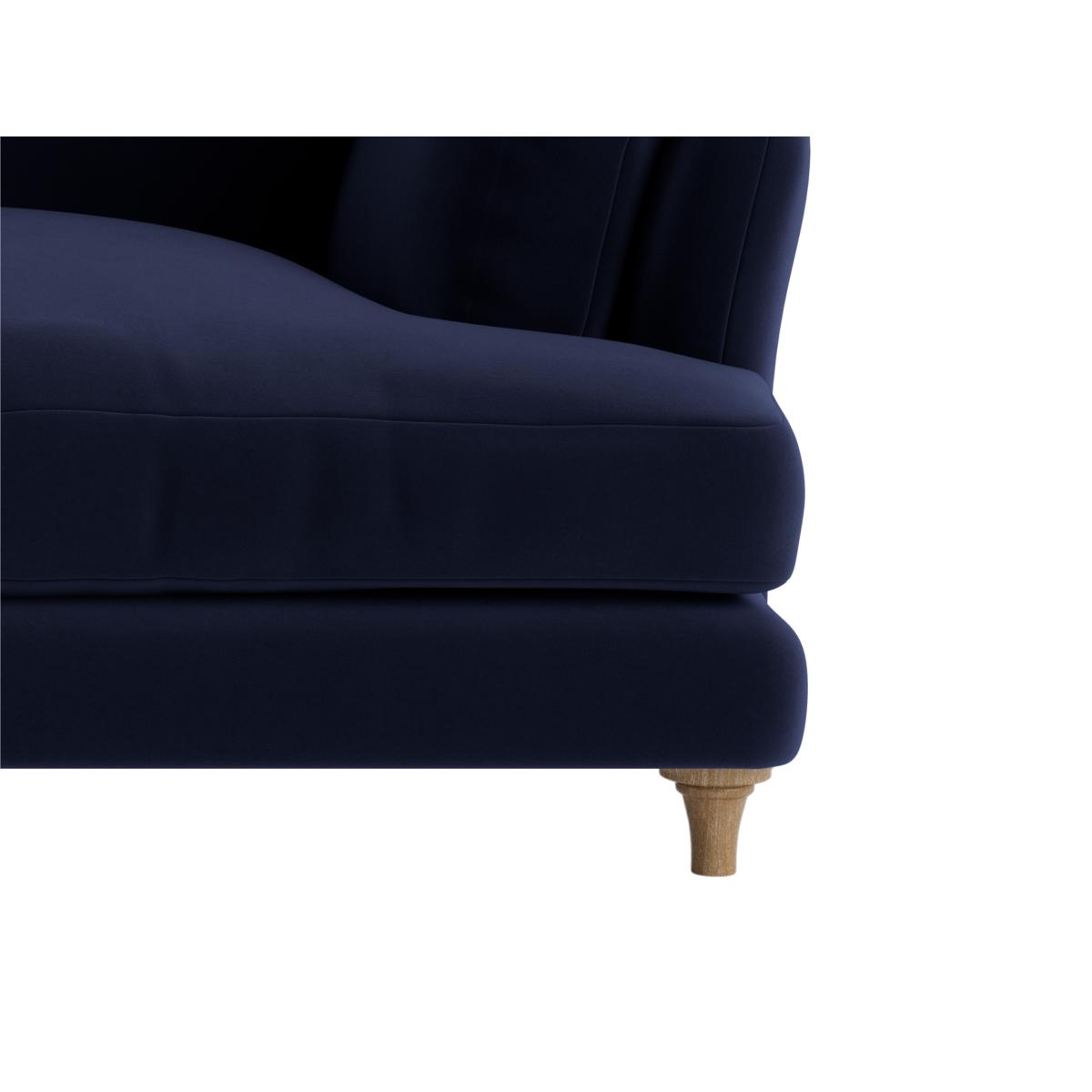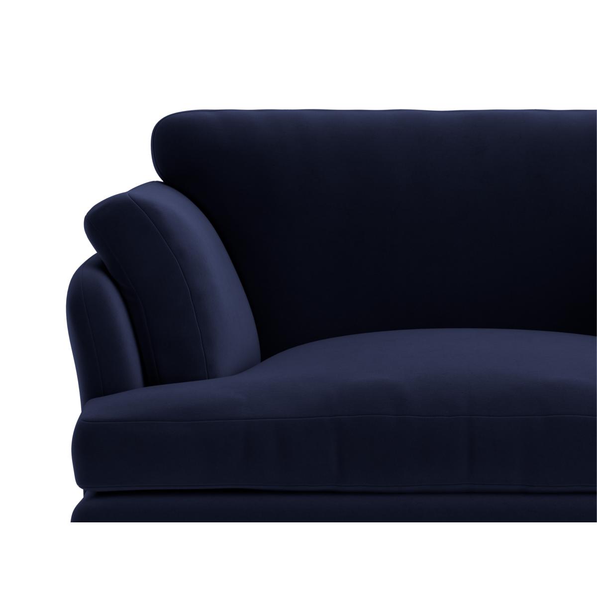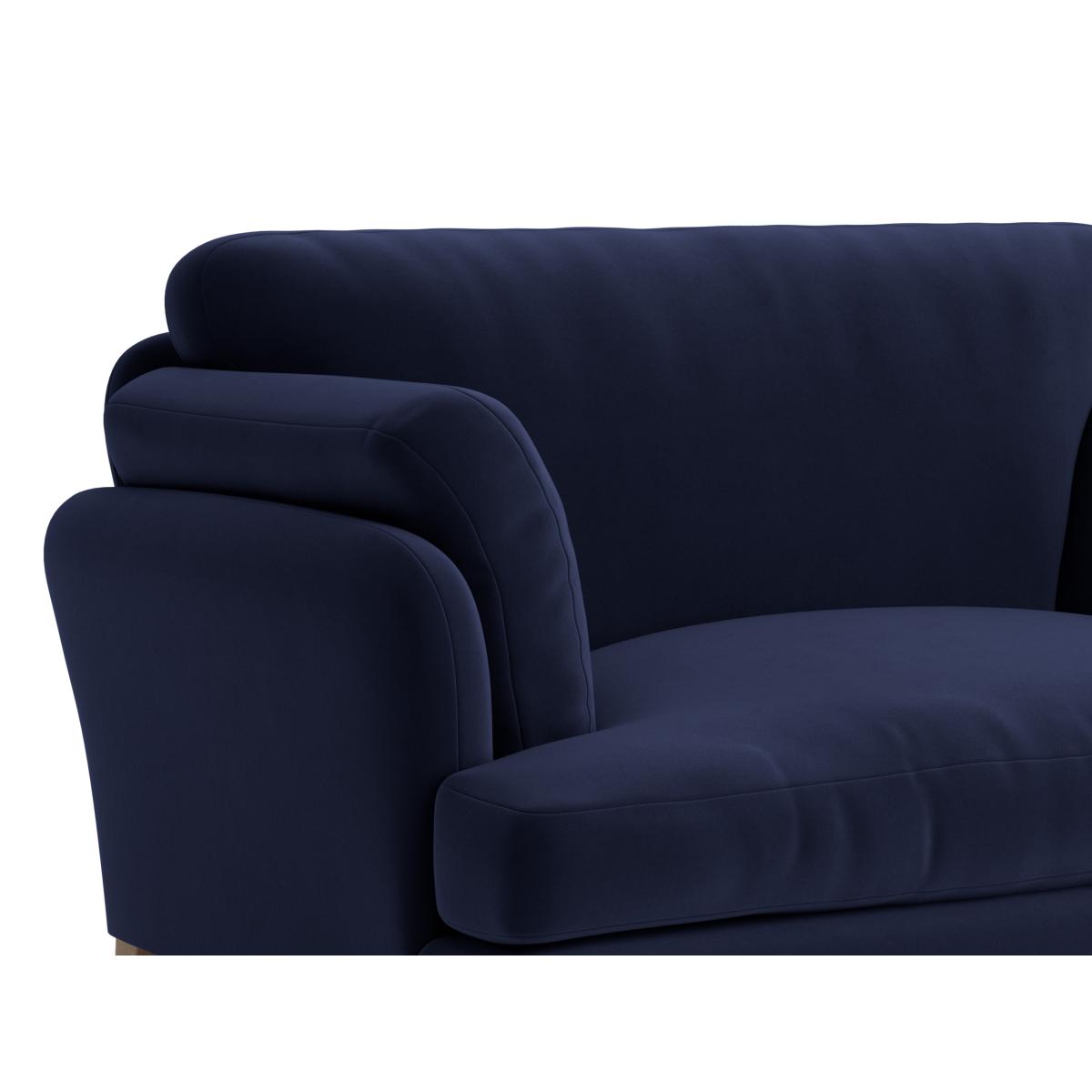 I love this love seat for its classic silhouette and versatile design, which makes it a real asset in a variety of interiors. Its deep blue colour adds an element of sophistication, working particularly well in contemporary, art-deco, or even traditional schemes when paired with richer tones or metallic accents. Practical styling tips include stacking a couple of patterned or textured cushions to add warmth and comfort, or placing it alongside a contrasting fabric armchair or coffee table to create a layered, inviting setting. Its size makes it an ideal choice for smaller living rooms, cosy corners, or open-plan spaces, providing plush seating without overwhelming the room. Overall, it’s a timeless statement piece that pairs well with both bold colour palettes and more muted, subdued interiors.
