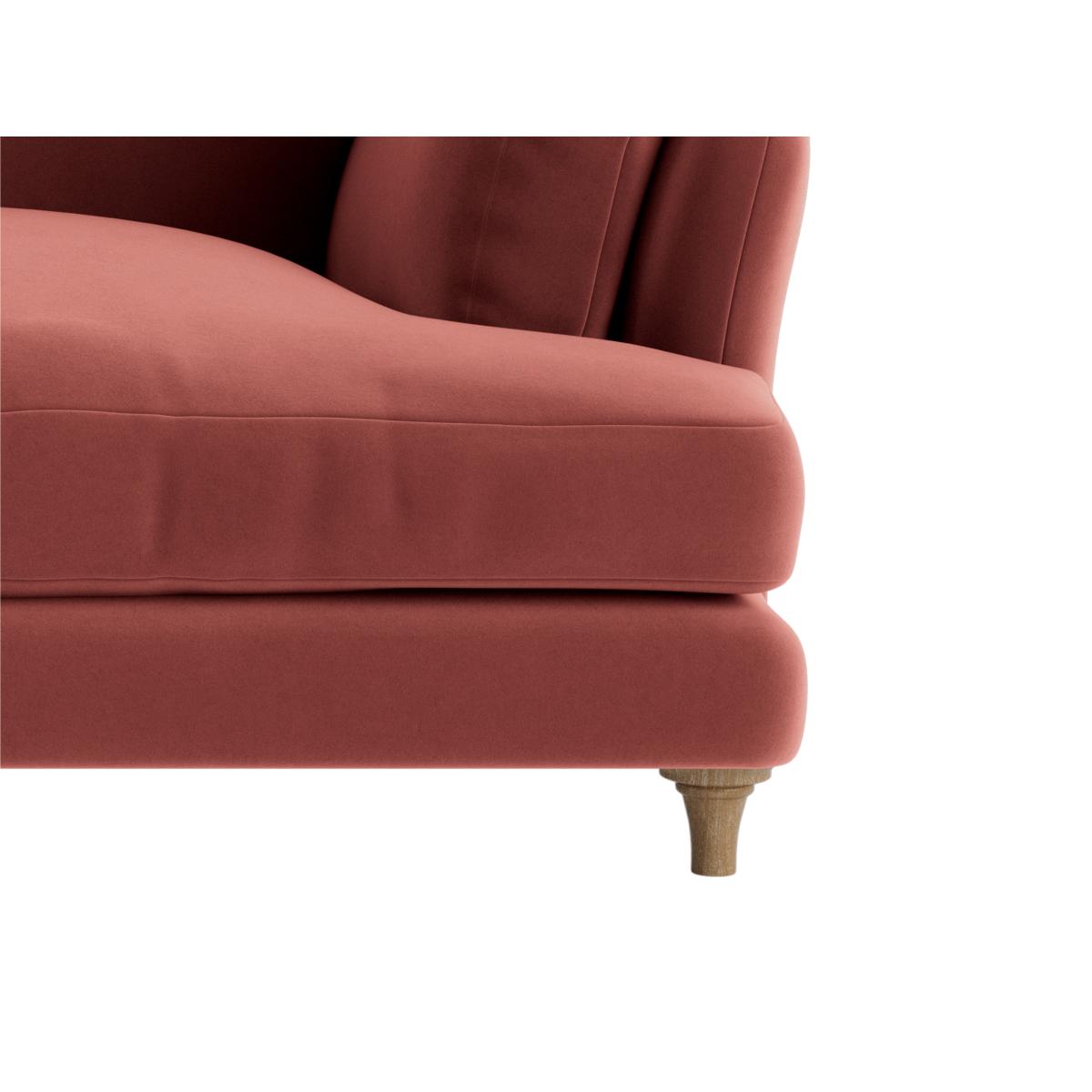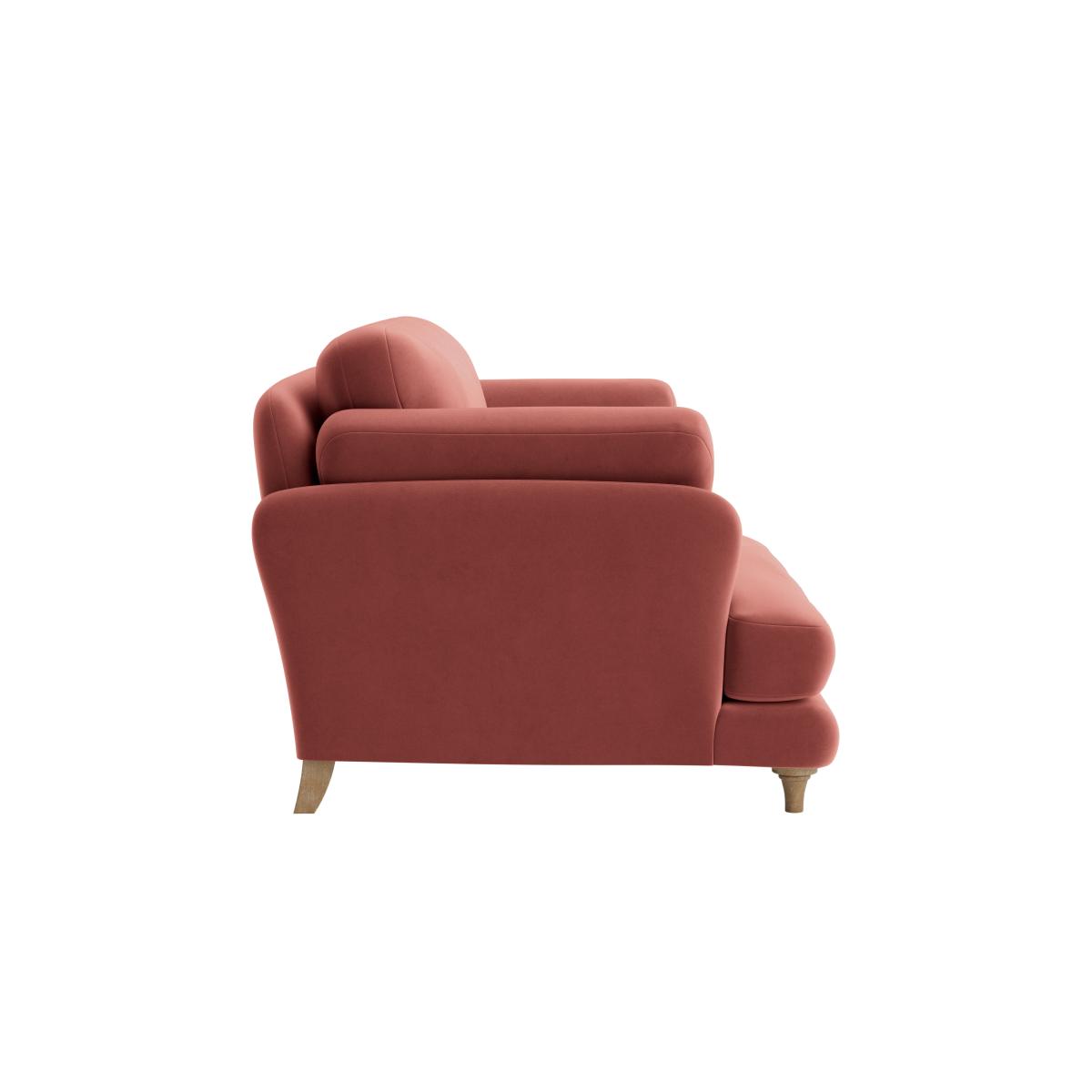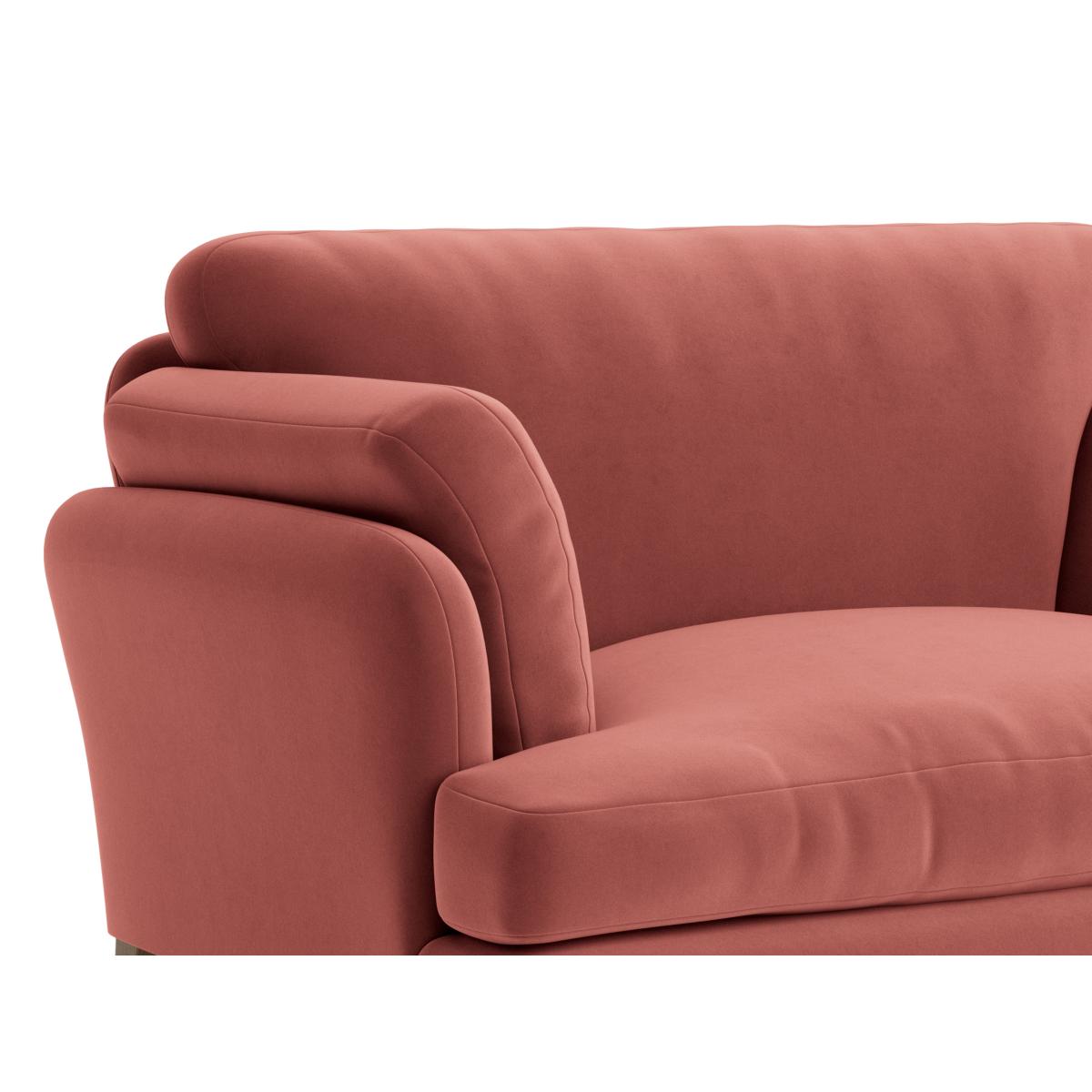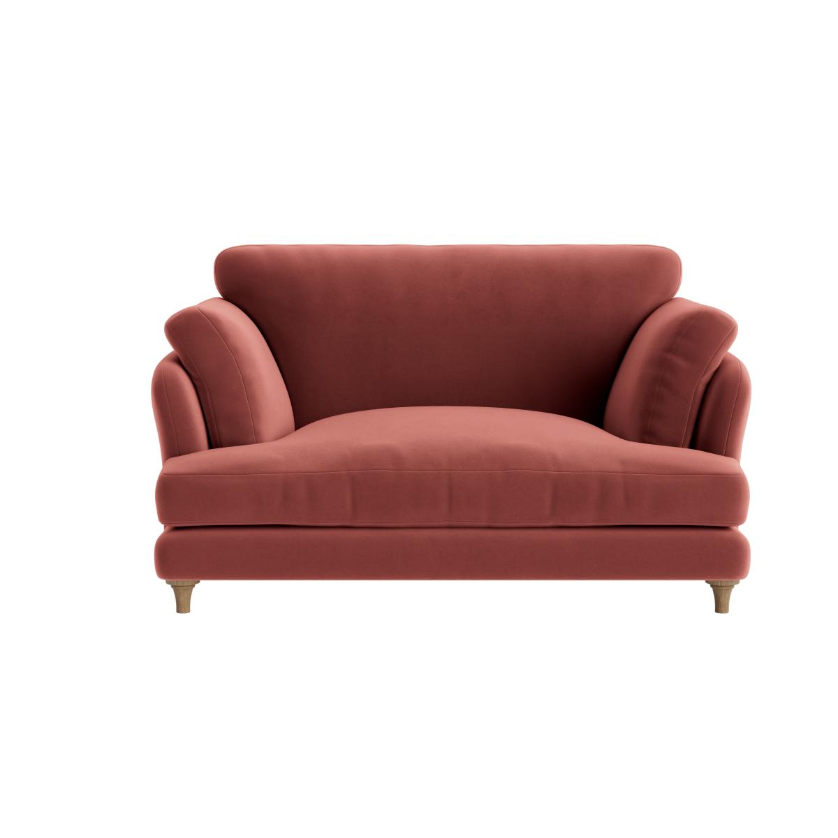 I love this little loveseat for its approachable, contemporary charm and versality. Its soft, dusty pink hue creates a relaxed yet sophisticated vibe, making it perfect for both modern and eclectic interiors. It works well in cosy living rooms, reading nooks, or even bedroom seating areas. When styling, consider pairing it with textured cushions or contrasting throws to add dimension, and complement with neutral or muted tones for a balanced look. Its compact size also makes it a practical choice for smaller spaces or open-plan layouts, where it can anchor a sitting area without overwhelming the room. Overall, it’s a versatile piece that combines comfort with stylish restraint.