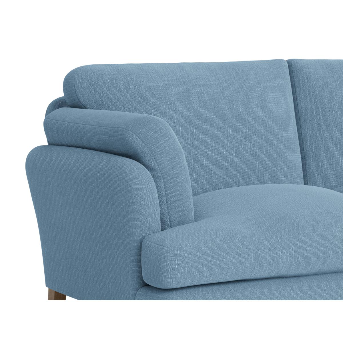 I really like the Smithy sofa for its inviting shape and relaxed silhouette, making it ideal for casual living spaces or family rooms. Its soft blue upholstery lends itself well to both contemporary and traditional interiors, especially when paired with neutral tones or light woods for a fresh look. To style it effectively, consider adding pattern cushions or textured throws for extra comfort and visual interest. This sofa works beautifully in both cosy, minimal spaces and more layered, eclectic settings, but avoid overcrowding it with too many accessories to keep its form clean and understated. Its versatility makes it a great choice for creating a welcoming, lived-in vibe.