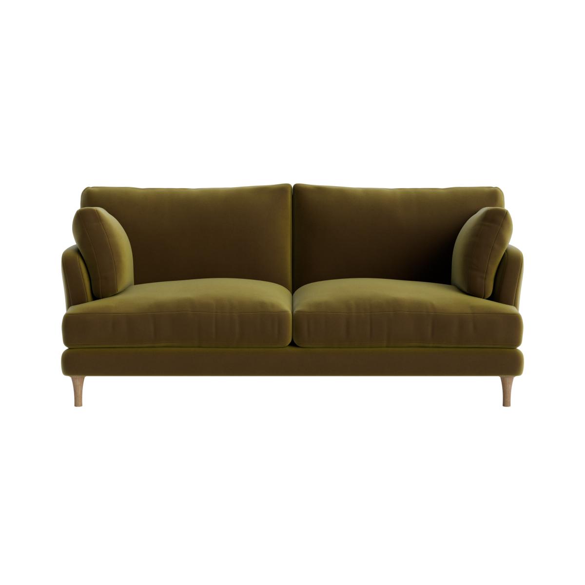 The comfy-looking sofa is a versatile piece that works well in a variety of interiors, from mid-century modern to eclectic schemes. I love its rounded arms and inviting shape, which make it perfect for both relaxing and entertaining. When styling around it, consider adding textured cushions in contrasting colours or patterns to break up the solid fabric. It pairs beautifully with both sleek, contemporary accents and vintage accessories. To keep it looking fresh, place it on a neutral or patterned rug that complements its olive tone, and keep nearby decor minimal to let the sofa be the hero. Practical tips include choosing durable fabrics for high-use living rooms and playing with height variations in accessories to add visual interest.
